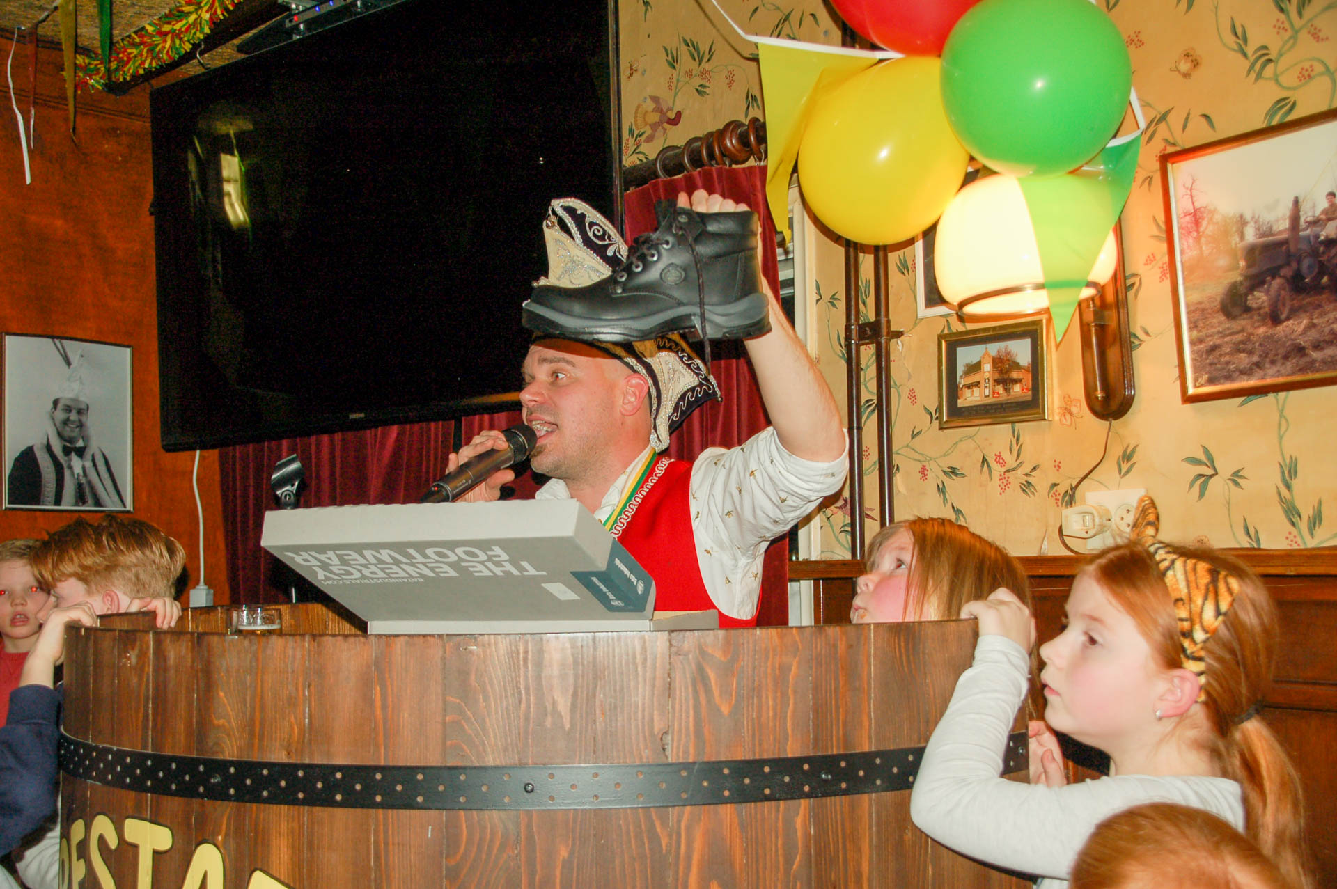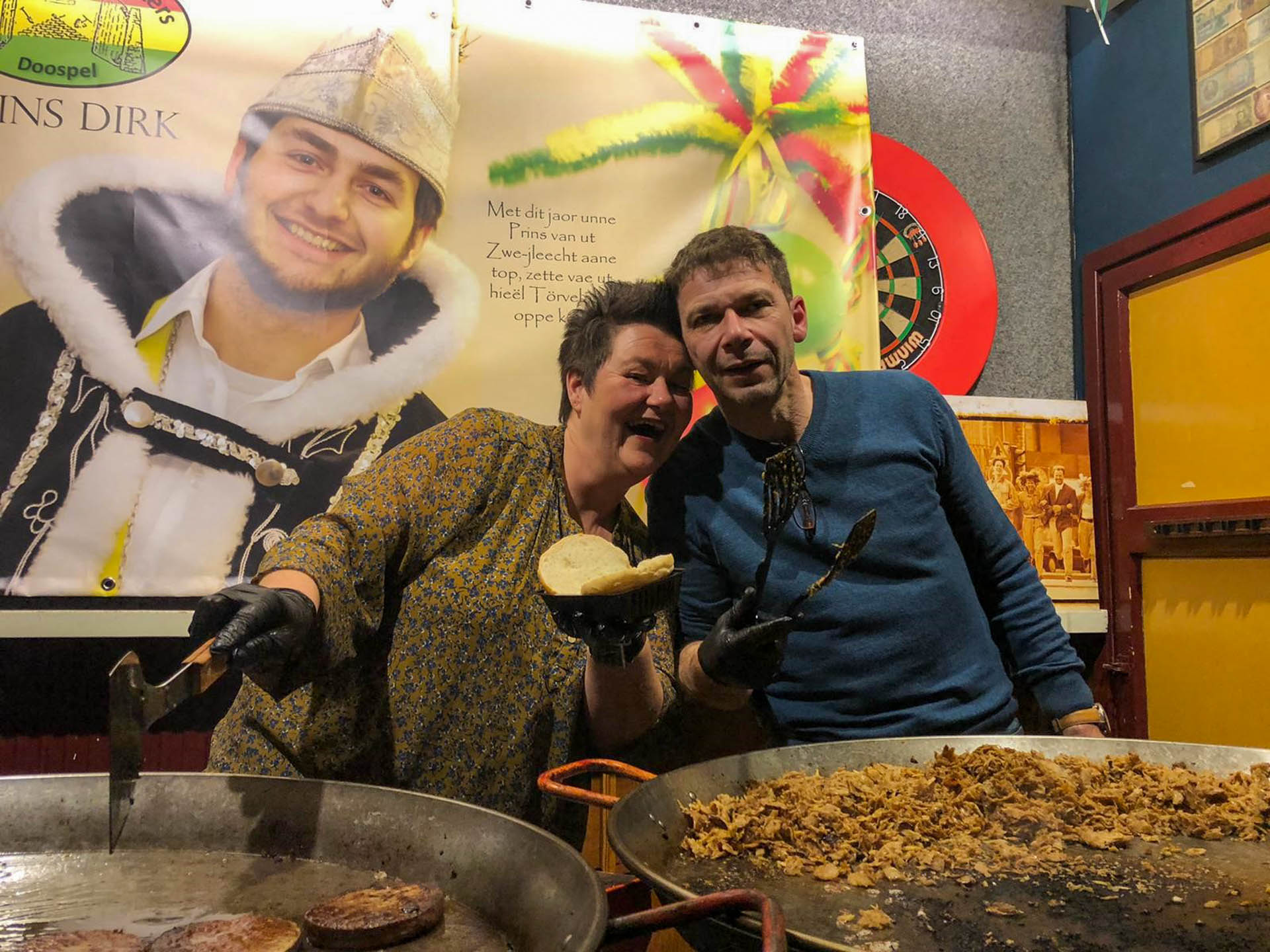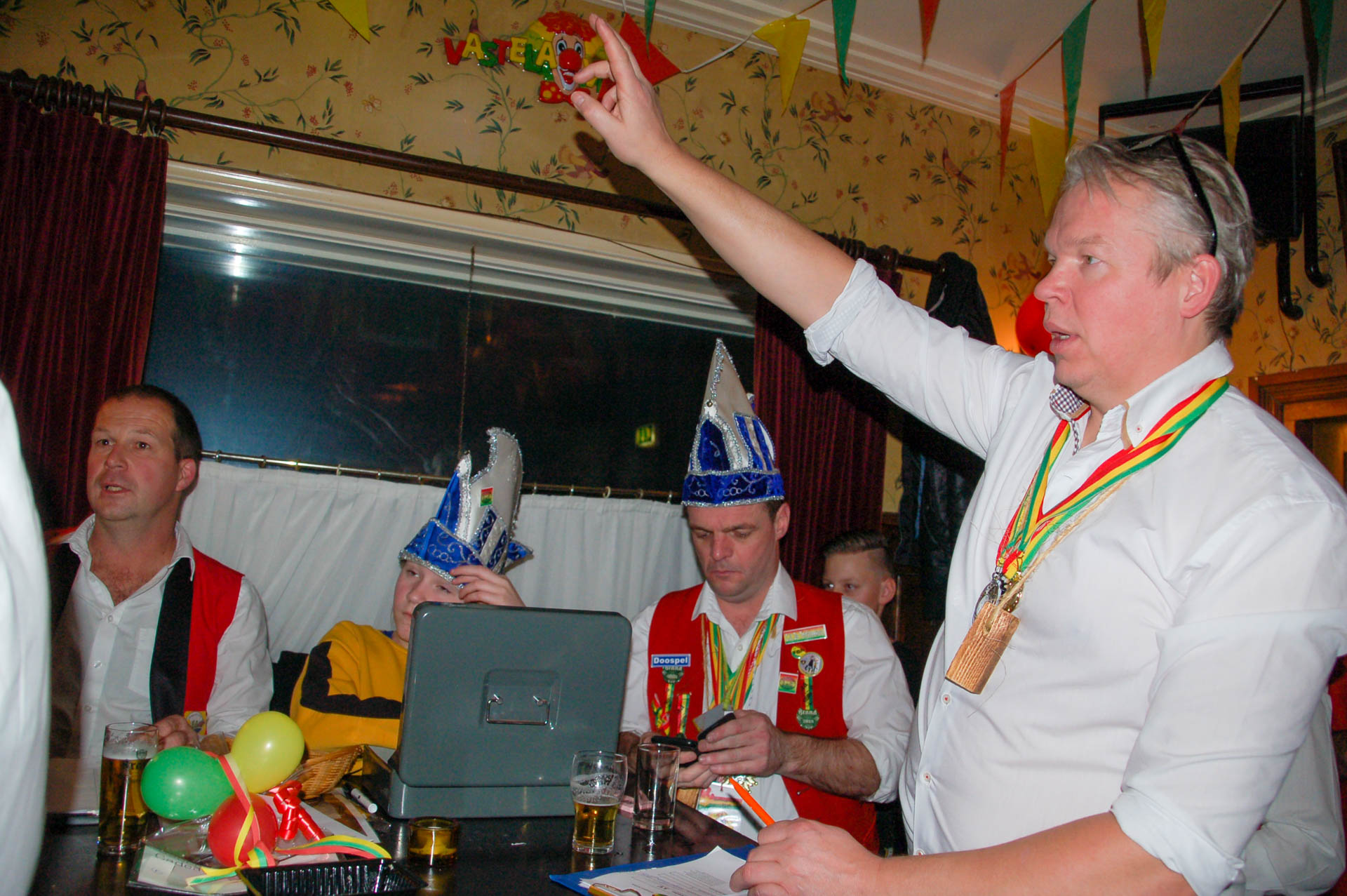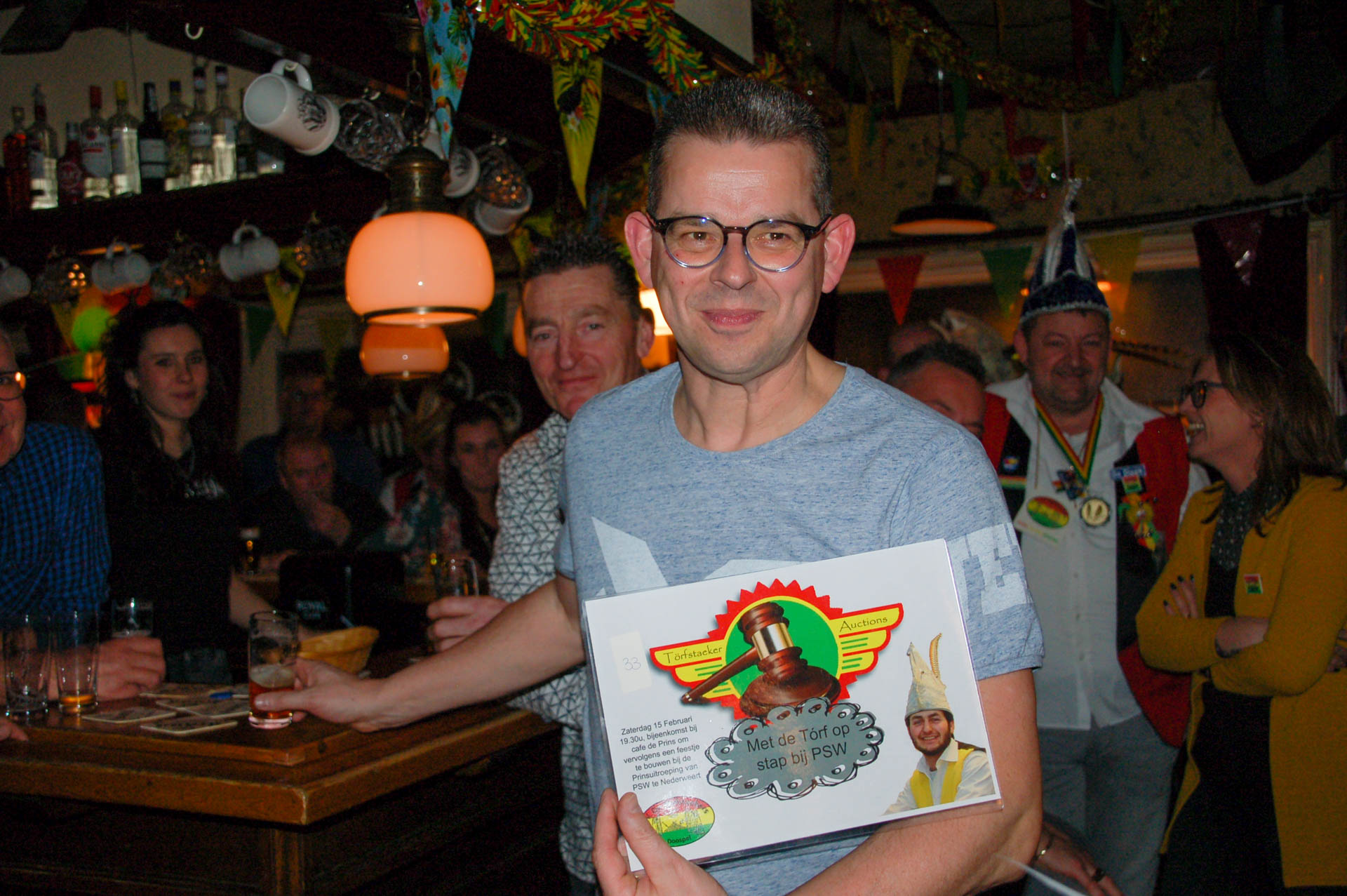 Het was zondagmiddag rumoerig en gezellig bij café de Prins in Ospel. Hier werden onder leiding van Vorst Paul van de Törfstaekers vele items geveild.