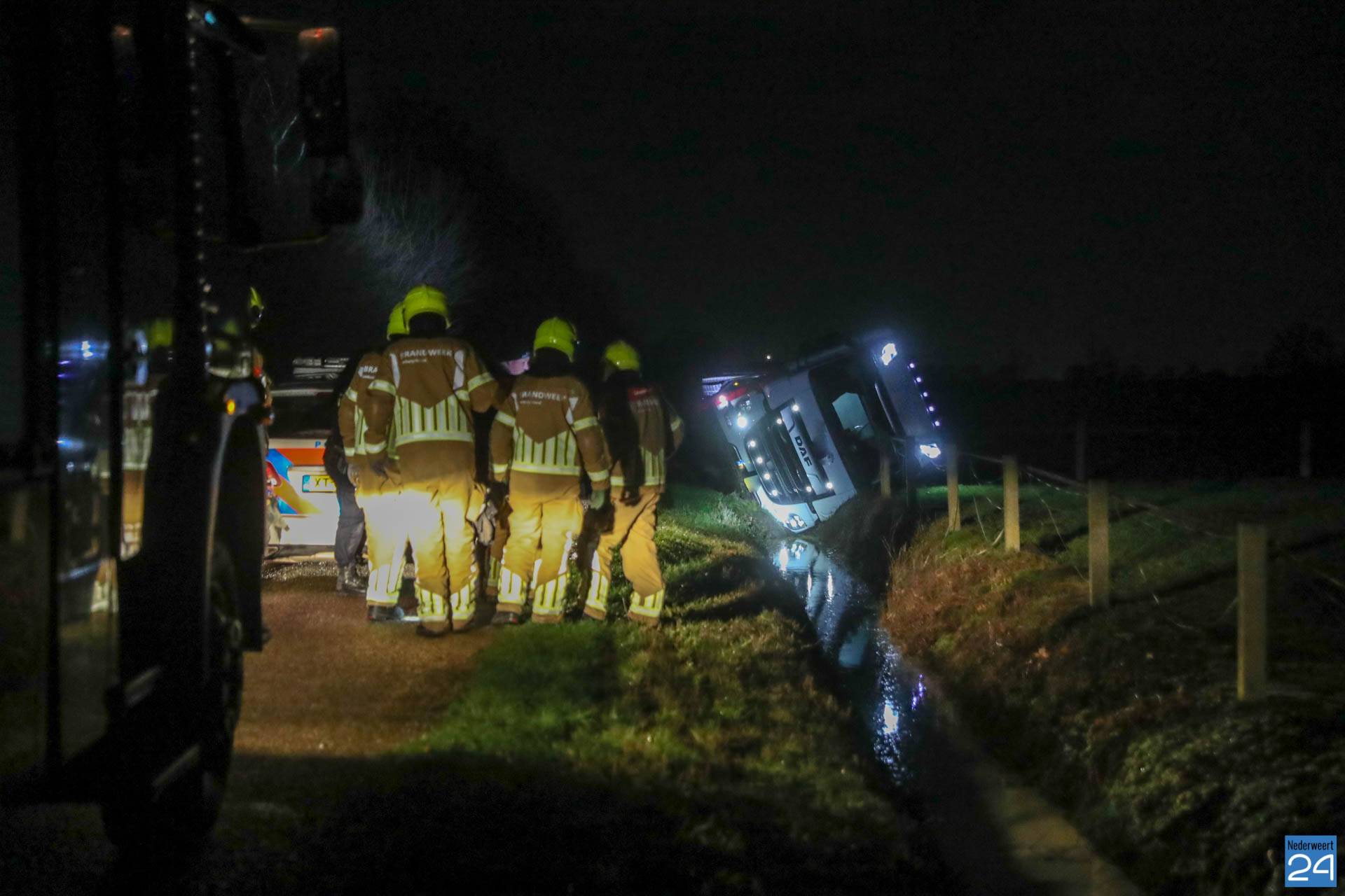De brandweer werd opgeroepen om hulp te bieden. Een grote kraan gaat de vrachtwagen rechtop zetten. Ondertussen zorgt de brandweer dat de uitstroom beperkt blijft. De gemeente zal zorgdragen voor het reinigen van de sloot.