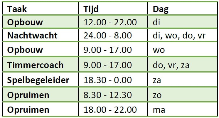 Opgeven kan door je naam, telefoonnummer, geboortedatum en de gewenste diensten te mailen naar timmerdorp@jongnederlandbudschop.nl of via http://bit.ly/vrijwilligerTDXXL2020.