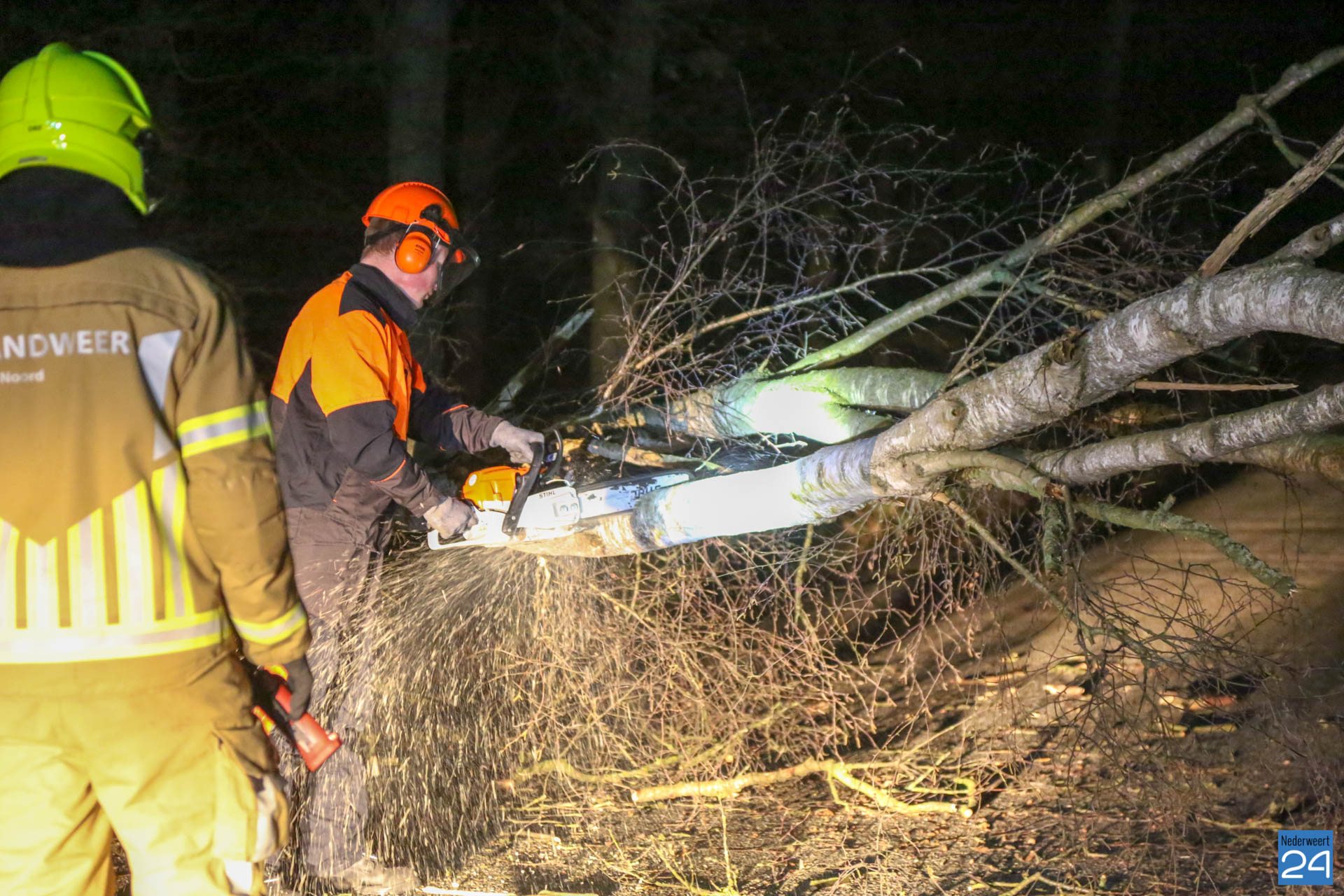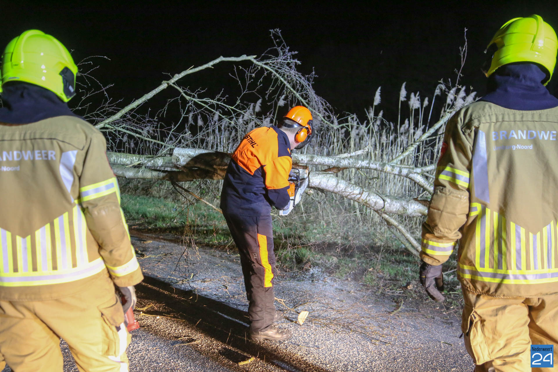 De brandweer heeft de boom in stukken gezaagd. Het snoeiafval werd vervolgens aan de kant gelegd. Inmiddels is de weg weer vrij.