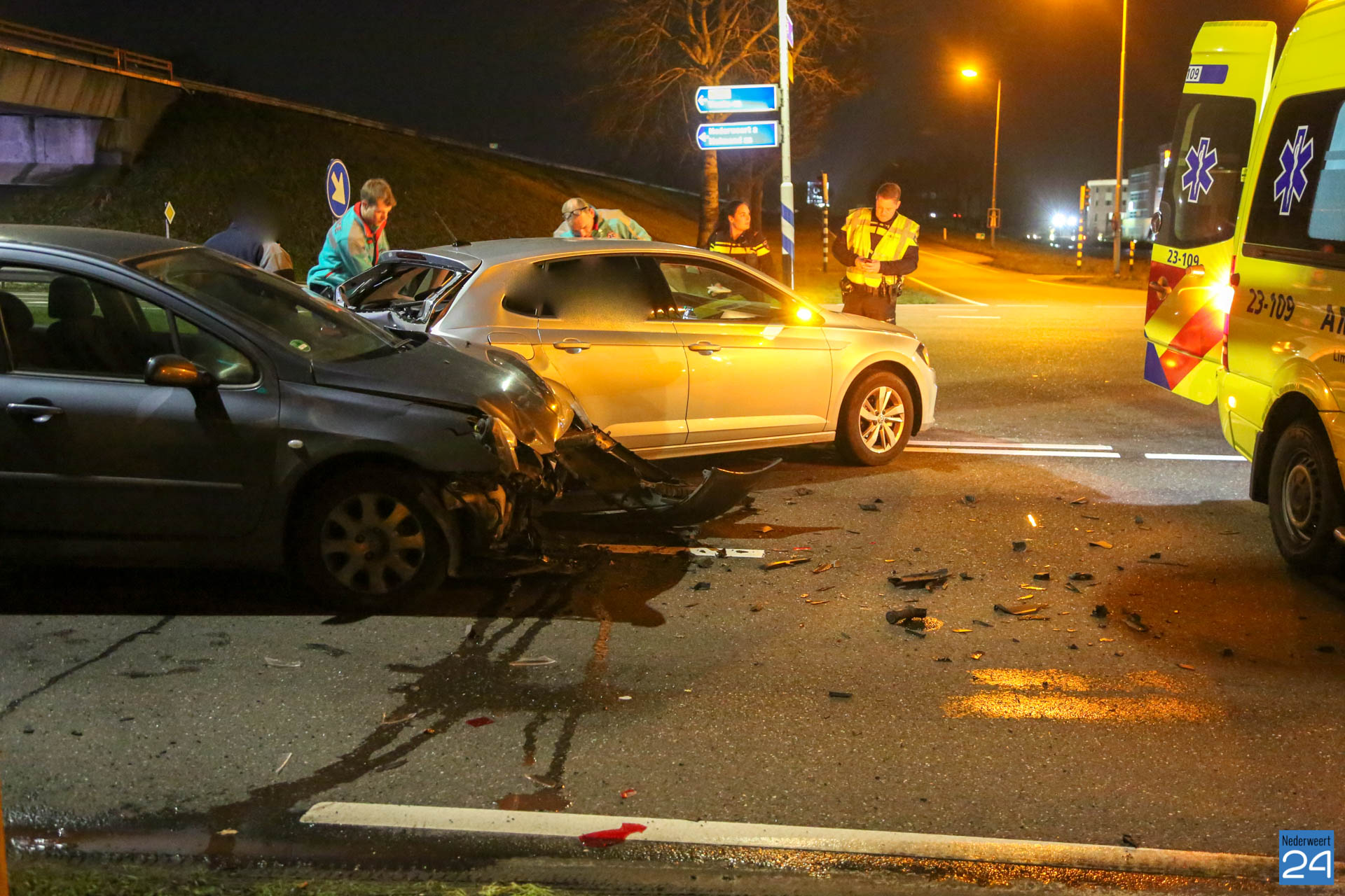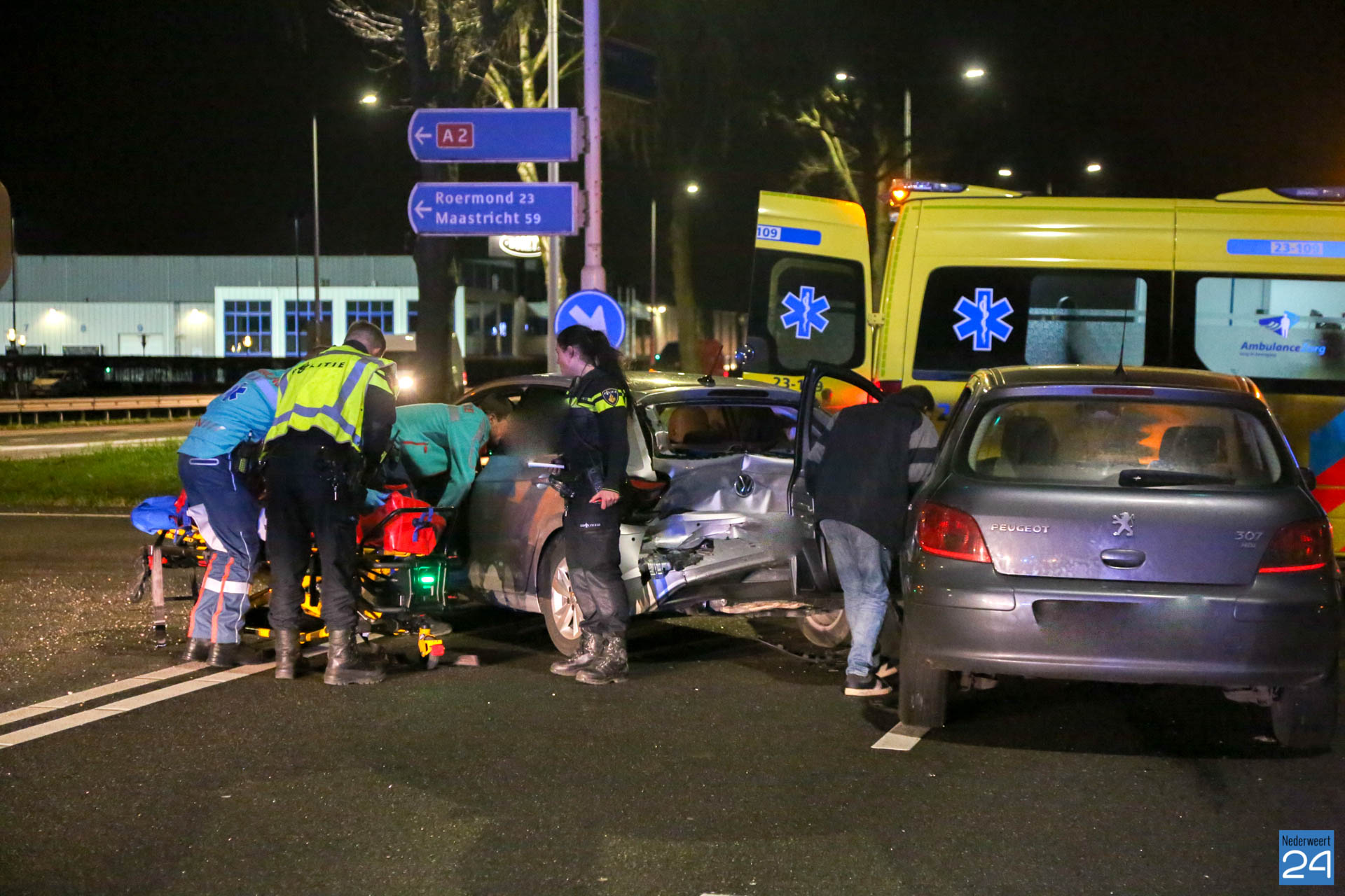 De schade aan beide auto’s is groot. Een berger heeft de voertuigen afgesleept. Tijdens de hulpverlening werd de kruising richting Weert tijdelijk afgesloten. Inmiddels is de weg weer vrij.