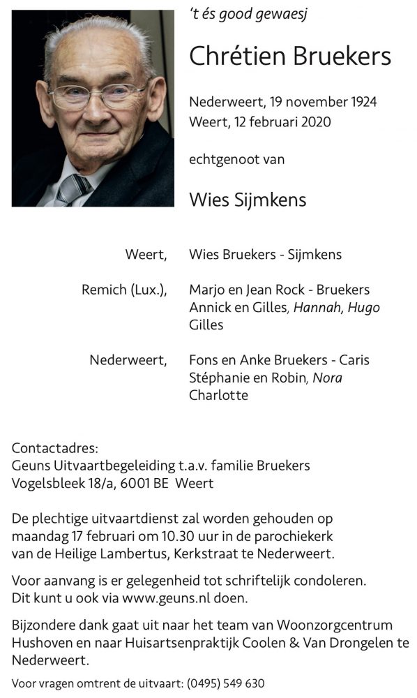 Overlijdensbericht: Chrétien Bruekers