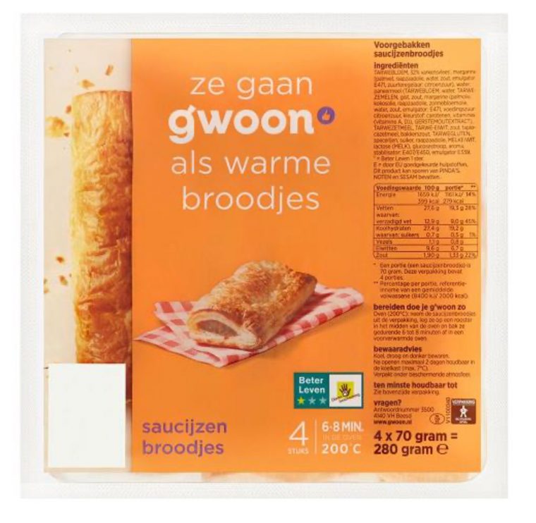 Het betreft de g’woon met EAN: 8710624296094, THT: 26-04-2020 en gewicht: 4×70 gram. De g’woon saucijzenbroodjes zijn verkocht in winkels van Coop, Hoogvliet, Jan Linders, Poiesz, Sligro.