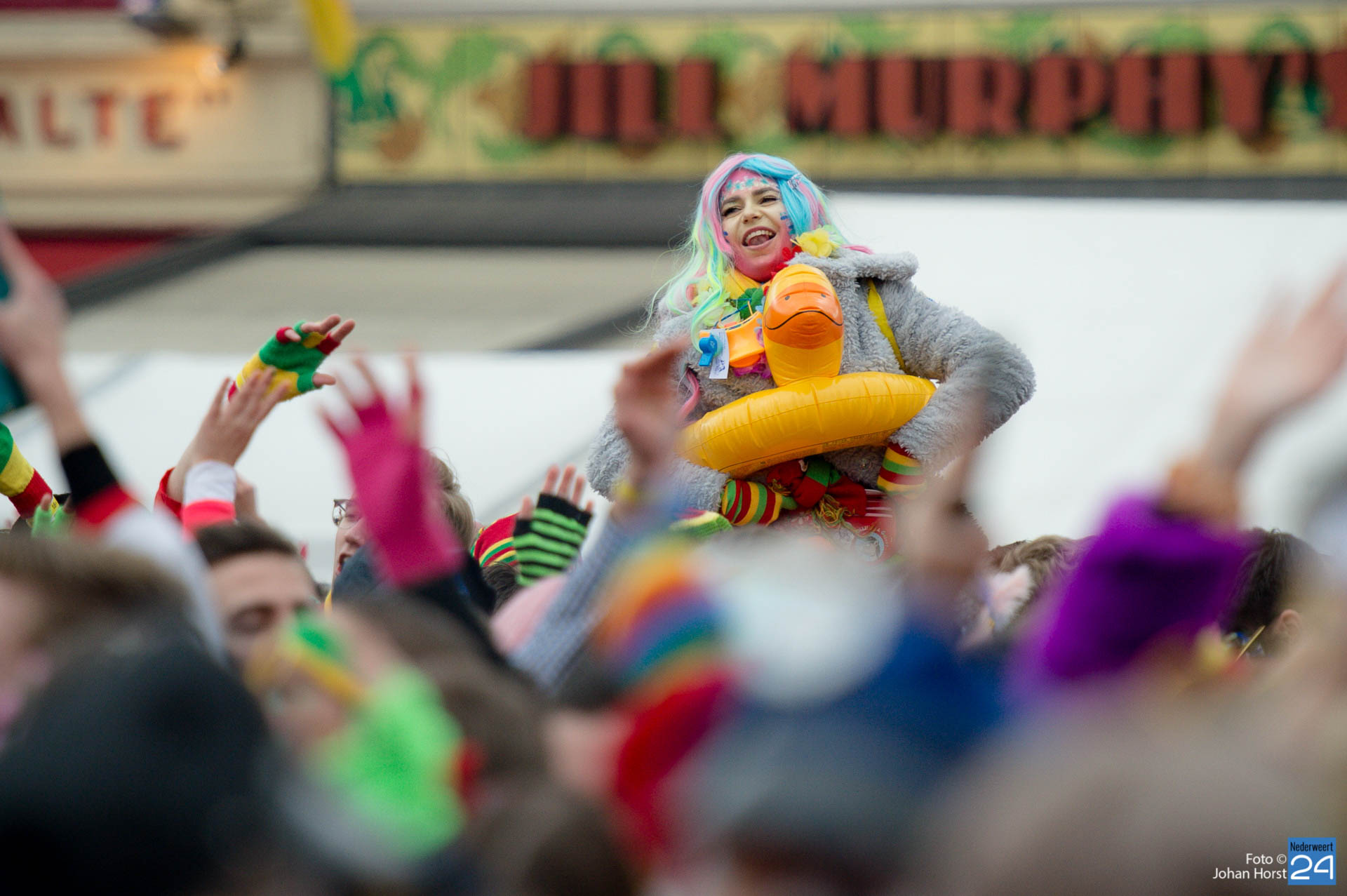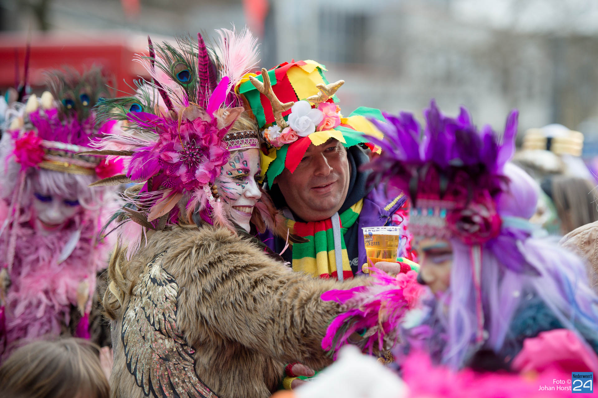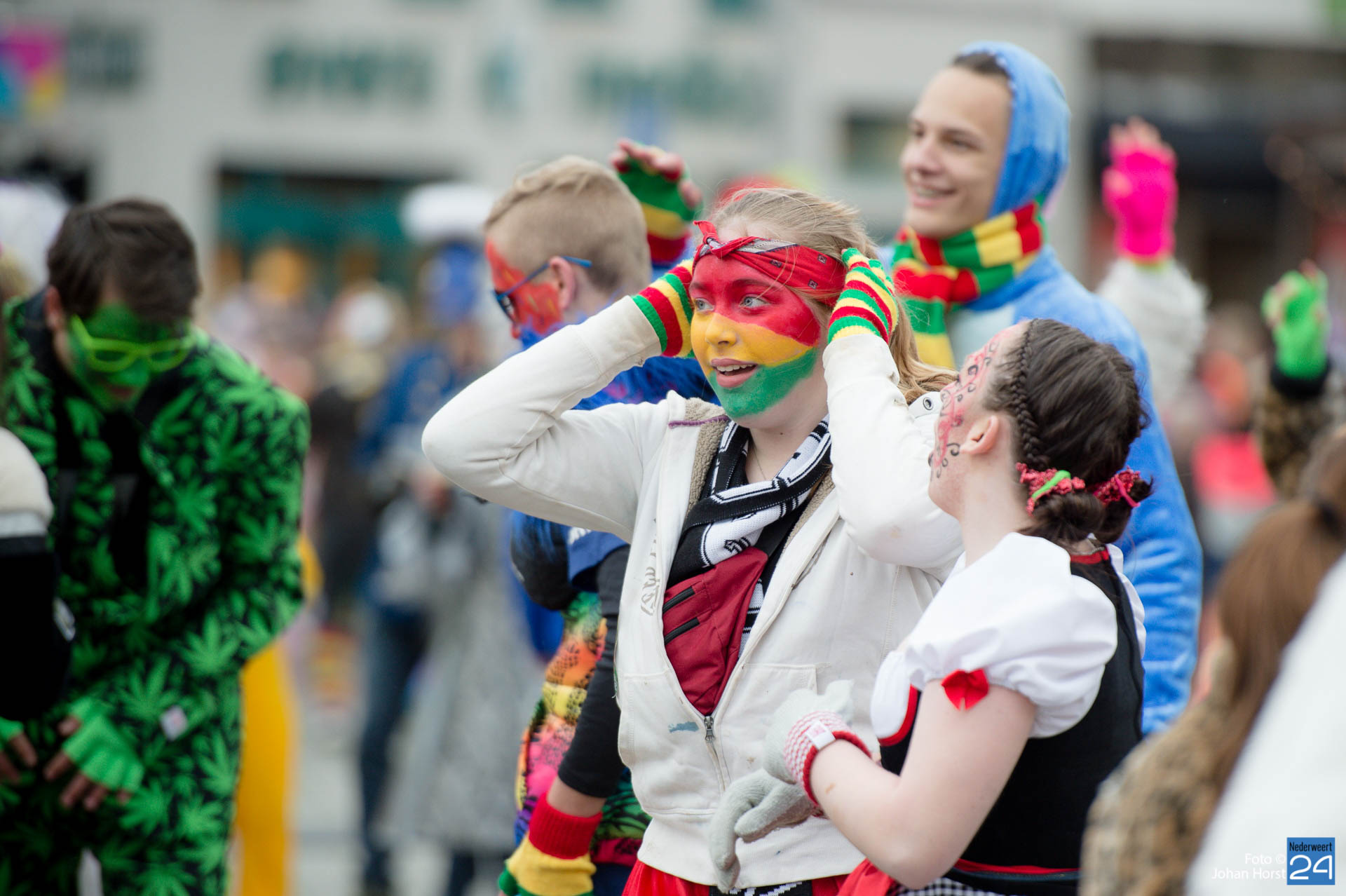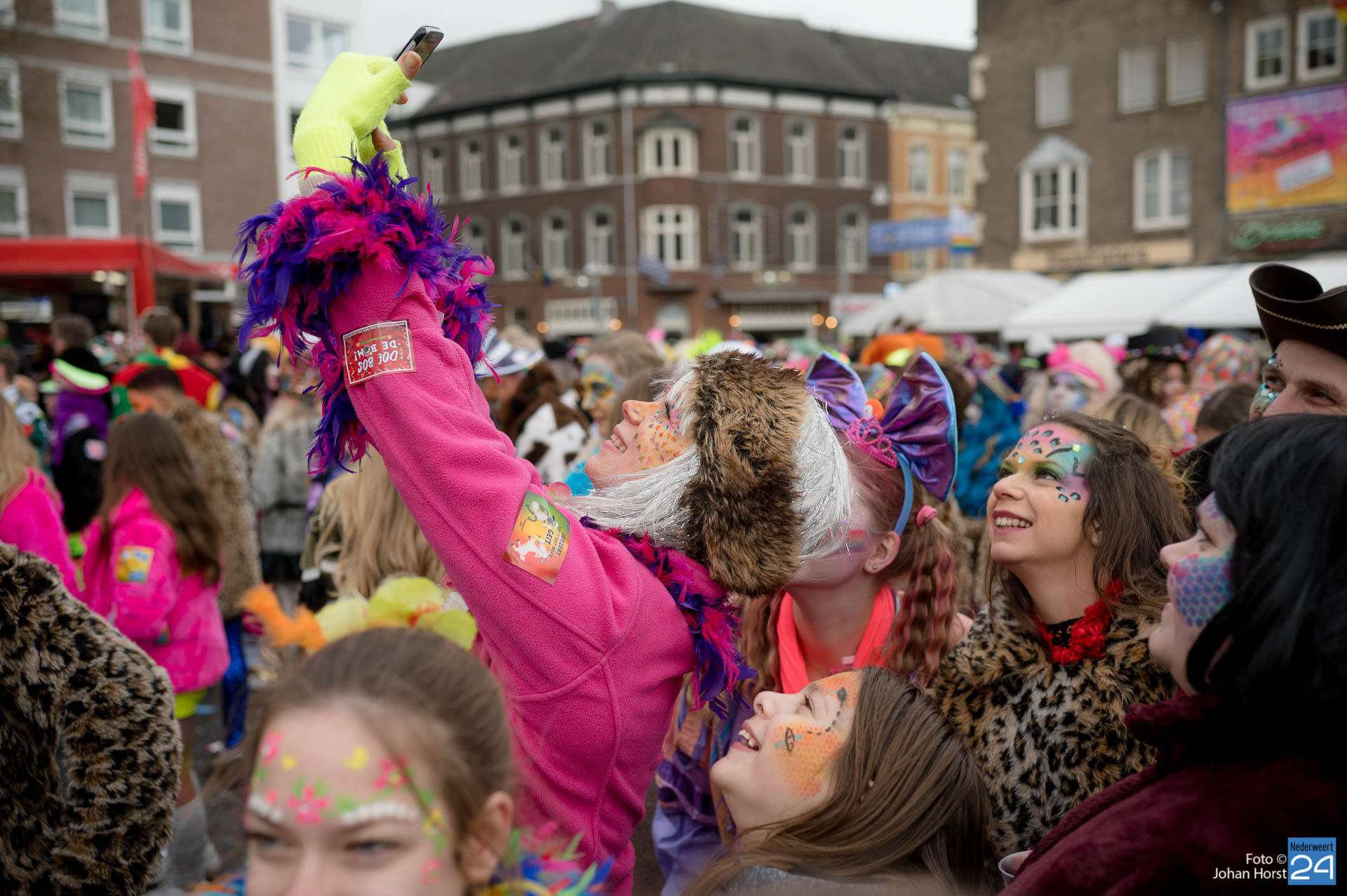Het was al vroeg druk op het stationsplein in Roermond. De jeugd verdrong zich rond het podium om een glimp van de Limburgse vastelaovendsartiesten op te vangen. Dit werd afgewisseld met optredens van de vorsten en de nodige dansgroepen. Er is veel aandacht besteed aan de kostuums én het schminkwerk zag er prachtig uit. Morgen vindt de jaarlijkse Sjtasiefestasie plaats.
