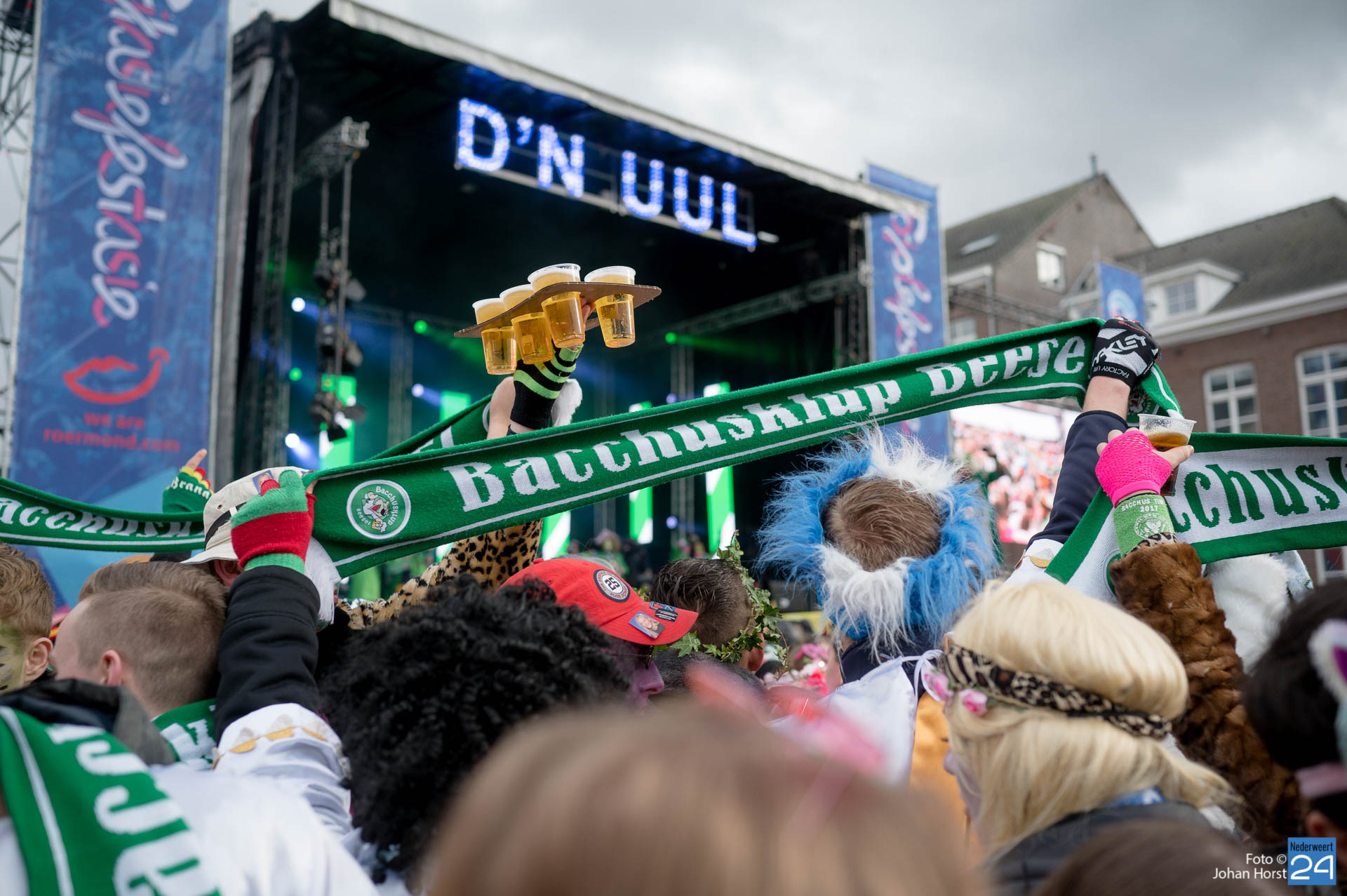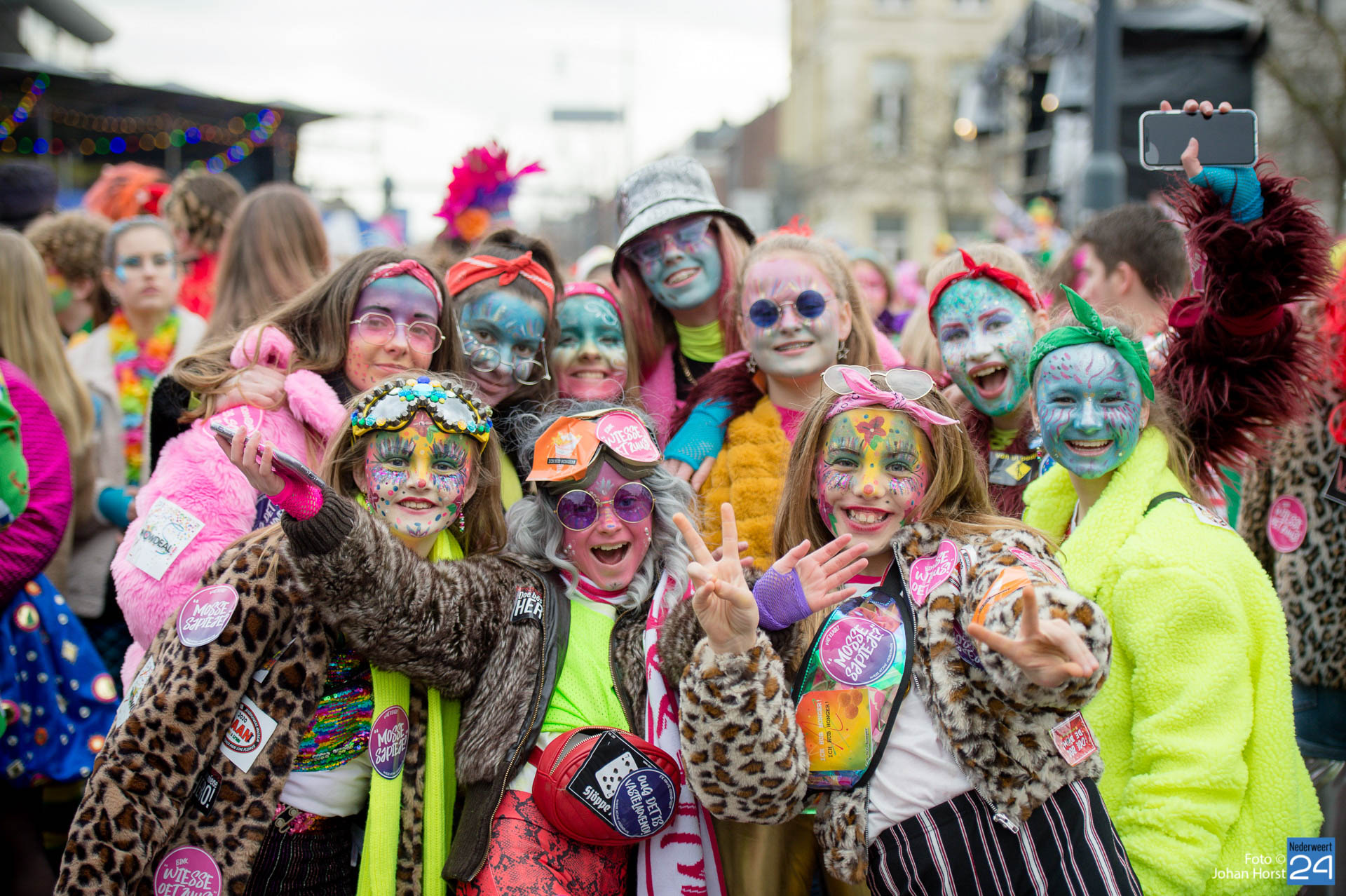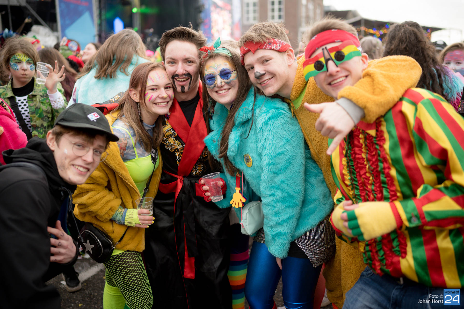 Vrijdagmiddag barste de Sjolefestasie los in Roermond. Dit evenement wordt speciaal georganiseerd voor de jeugd, maar iedereen was welkom. Niet alleen inwoners van Roermond vierden hier vastelaovendj. Feestgangers uit de wijde omgeving, zo ook Nederweerter carnavalisten, waren hierbij aanwezig.