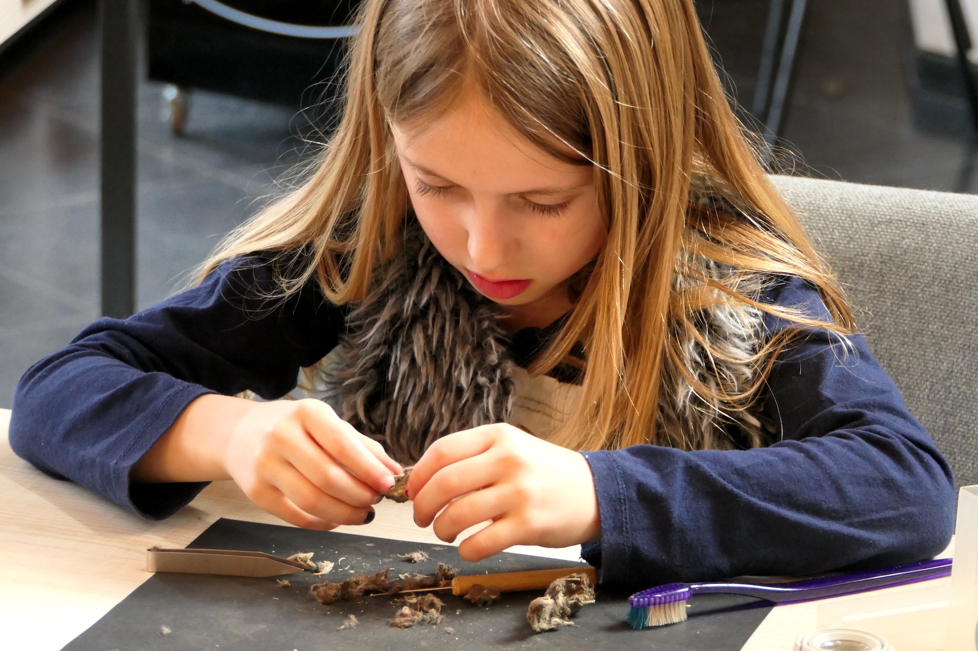 Na afloop van de excursie kunnen kinderen een uilenbal pluizen. Een braakbal, ook wel uilenbal genoemd bevat voedselresten die een roofvogel niet kan verteren. Bij het uitpluizen van zo’n bal komt soms een compleet skelet van een muis of ander klein dier te voorschijn. Met behulp van zoekkaarten kom je er achter welk dier het is. Een Peelgids geeft uitleg bij dit forensisch onderzoek.