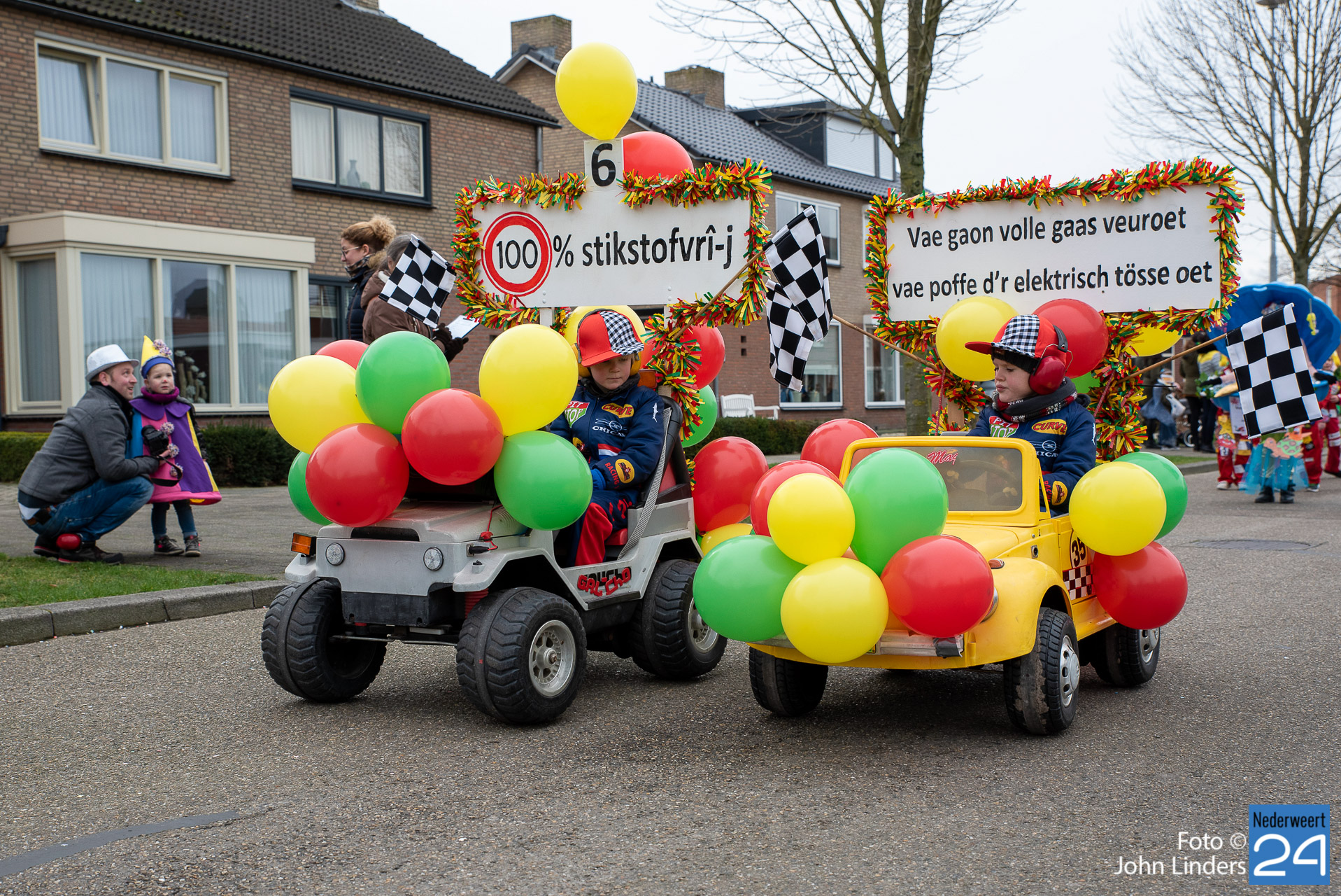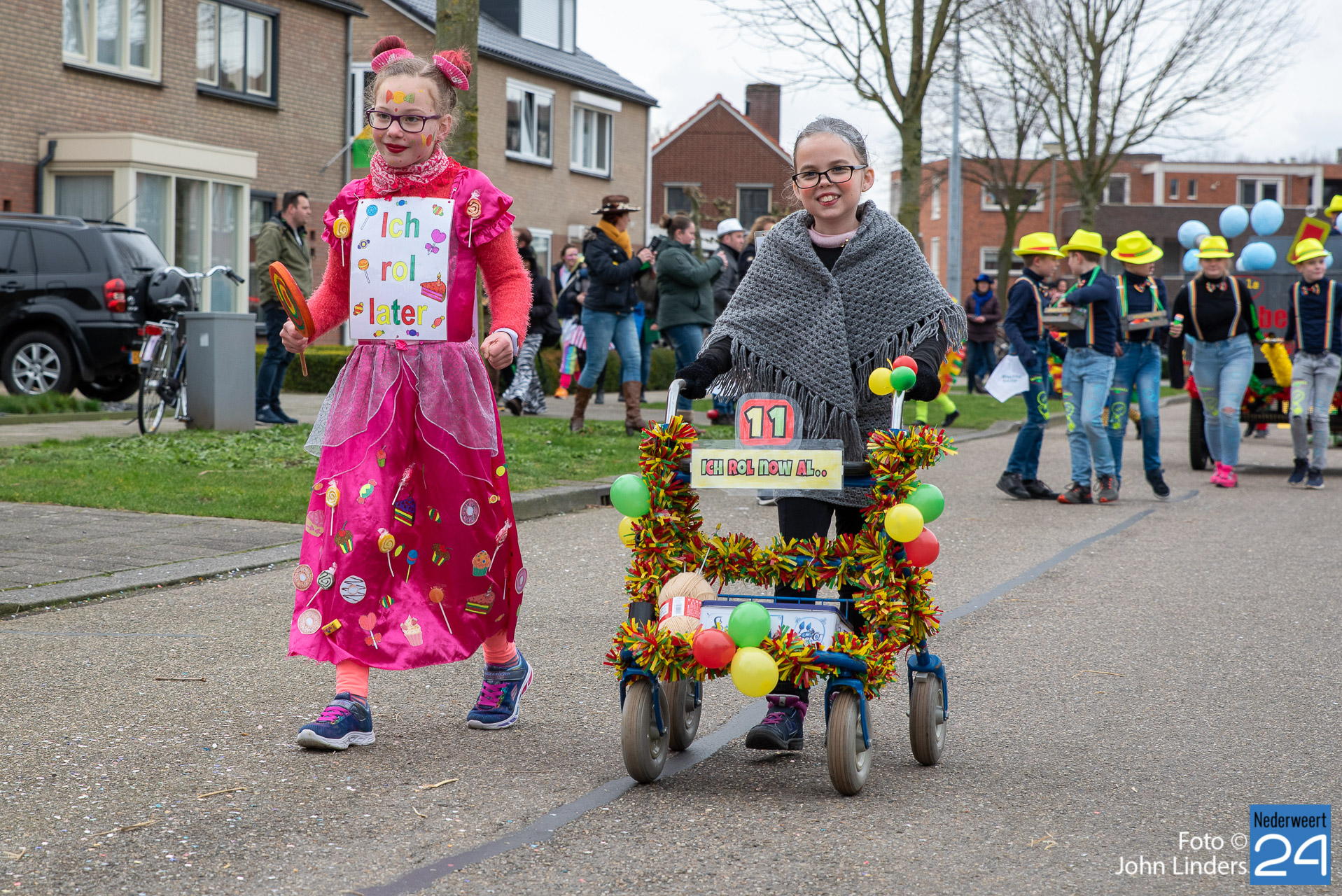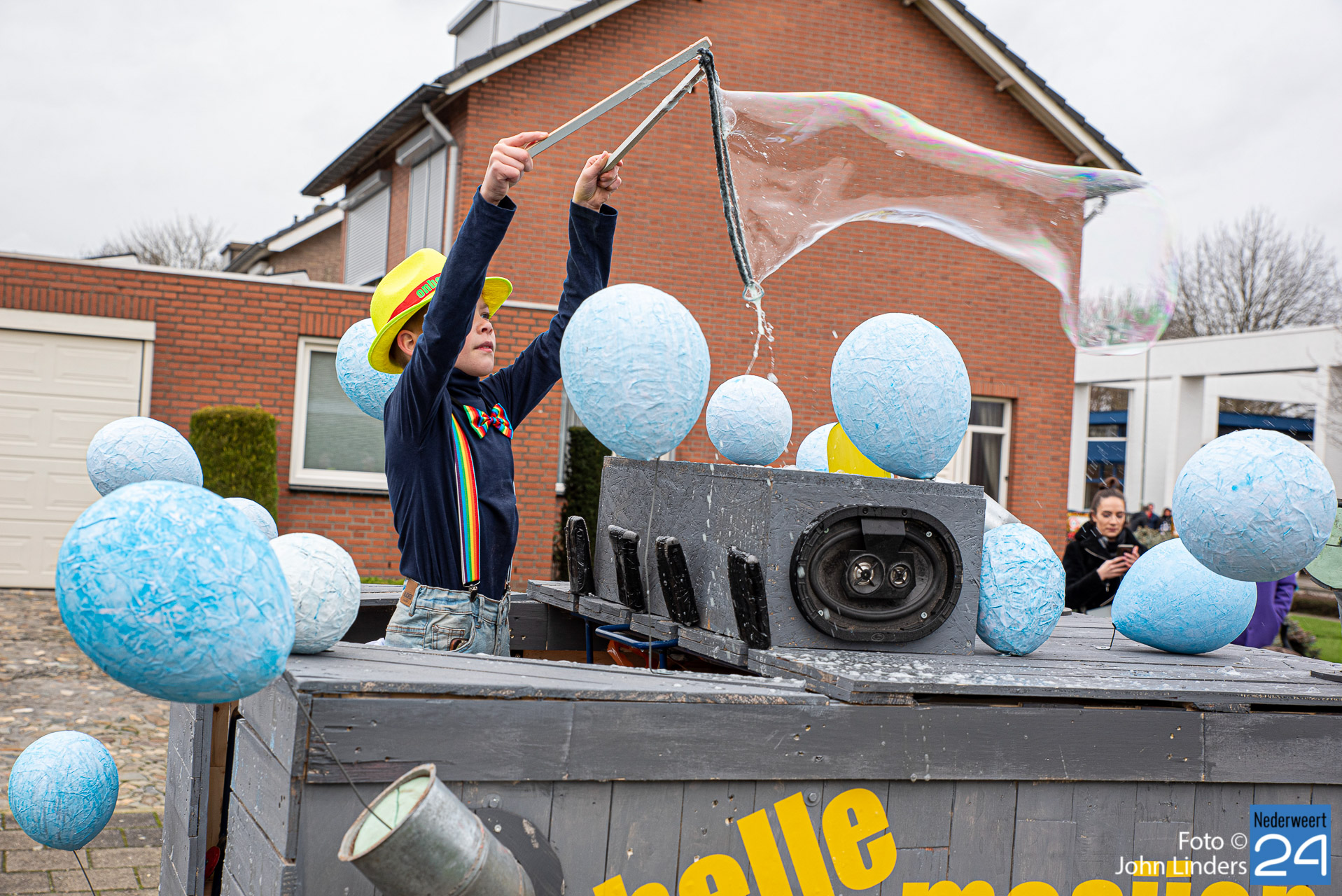 De kinderen genoten zichtbaar, omdat ze eindelijk hun mooie creaties aan het toegestroomde publiek mochten laten zien. Er waren weer vele papa’s en mama’s, opa’s en oma’s en andere familieleden toegestroomd om de optocht met verschillende kleurrijke wagens en groepen te aanschouwen.