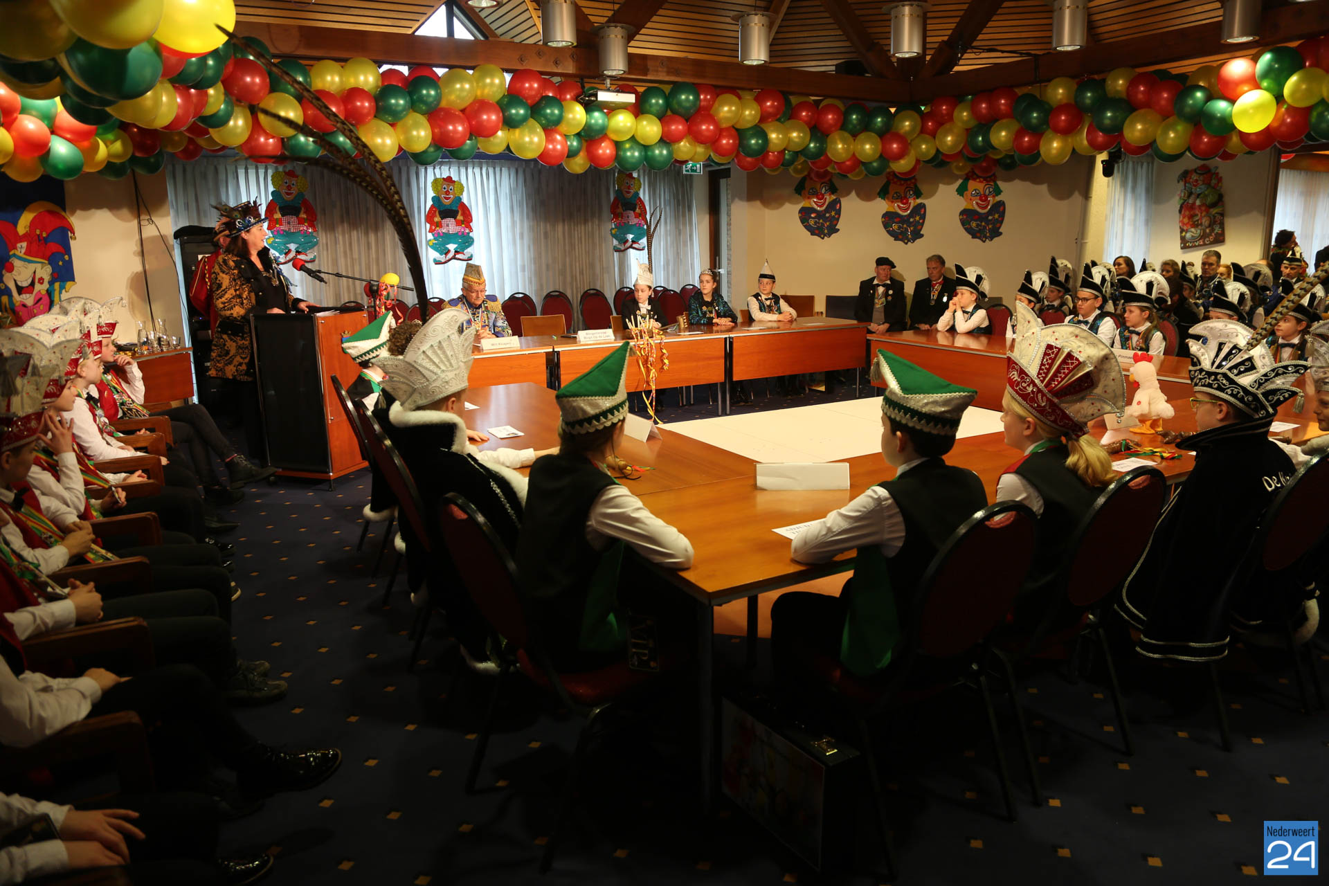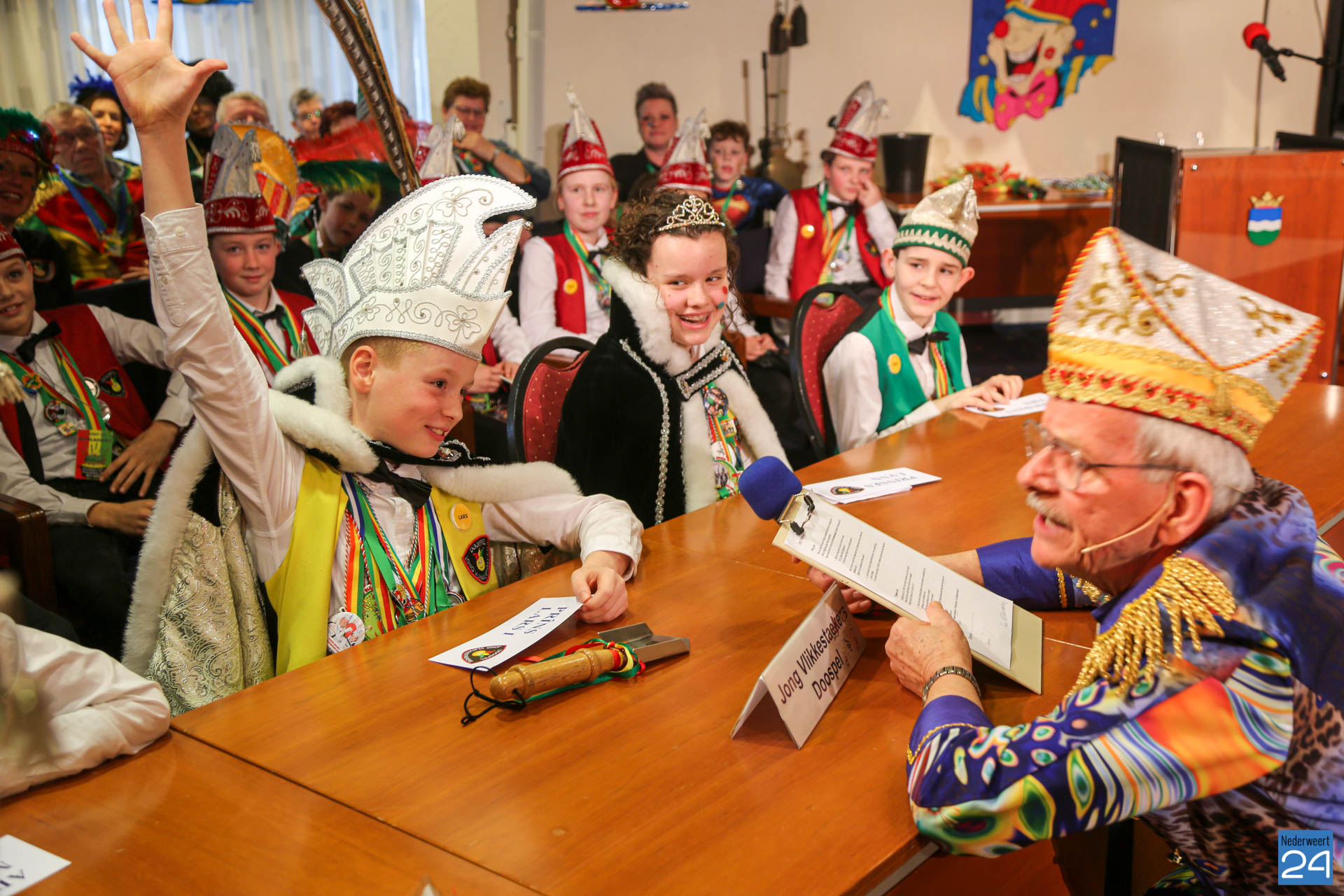 Zaterdagmiddag kwamen de jeugdprinsen met hun prinses, adjudanten, raad van elf en een grote groep aanhangers naar de Kolderzaal in het gemeentehuis van Nederweert om daar de macht over te nemen van burgemeester Birgit op de Laak.