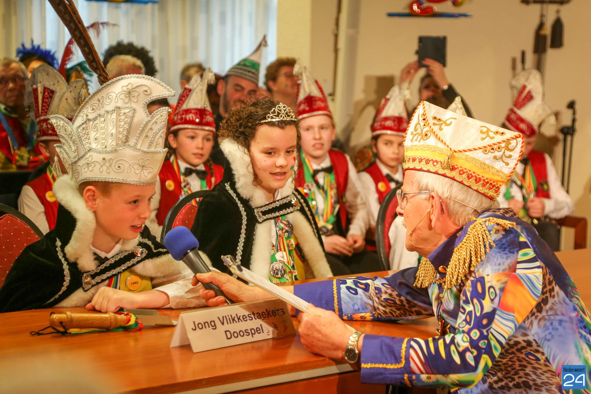 Als laatste kregen Jeugdprins Willem I en jeugdprinses Lotte van V.V. De Pinmaekers Ni-jwieërt uit handen van burgemeester Op de Laak de sleutel van het ‘achterpörtje’. Hiermee heeft de jeugd de macht in handen. In ieder geval tot vanavond, want dan krijgen Prins Maikel en Prinses Anouk de sleutel van de voordeur van het gemeentehuis.