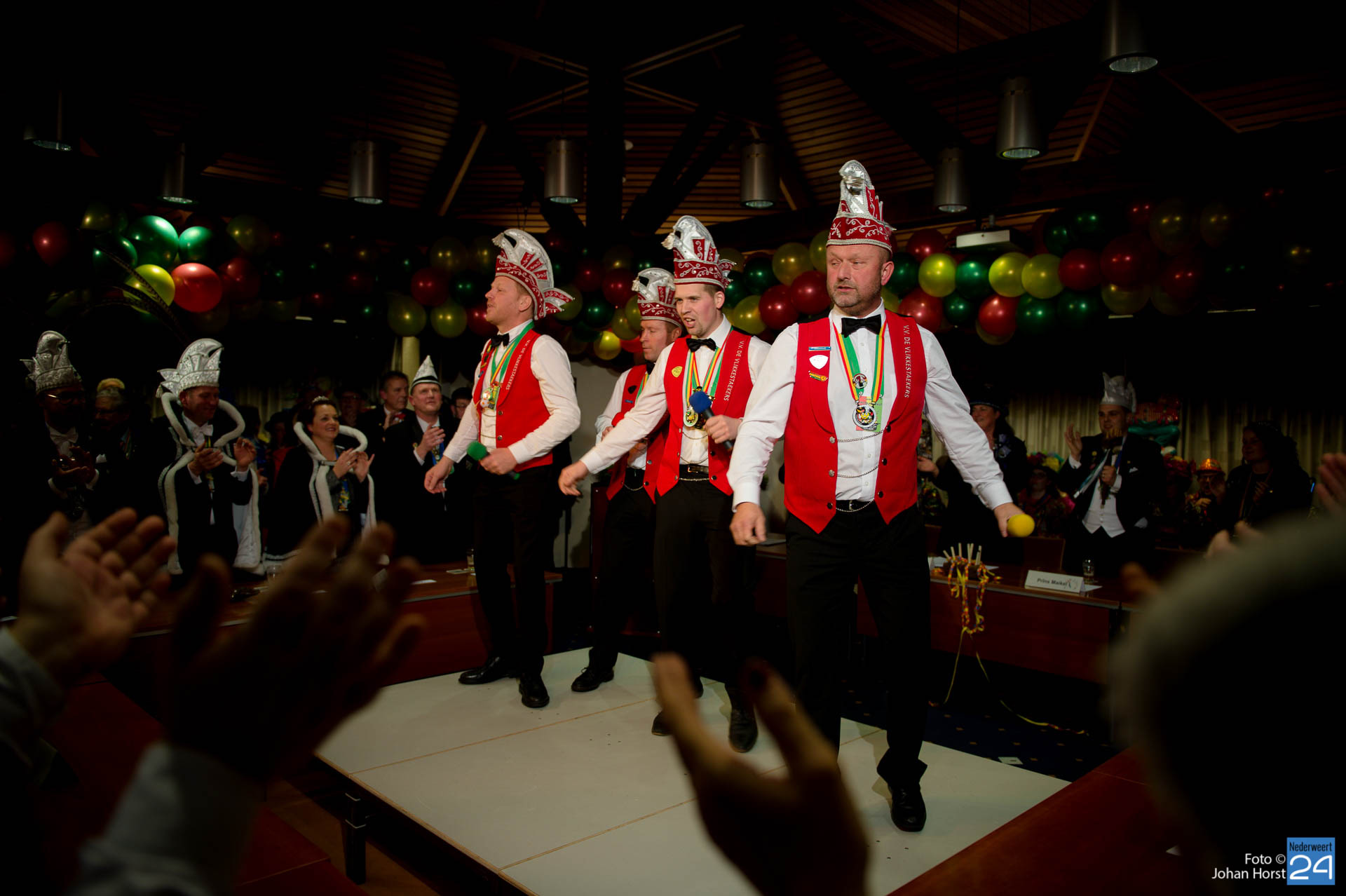 Zaterdagavond kwamen De Bengels, De Piepkukes, De Pinmaekers en De Vlikkestaekers met hun gevolg naar de Kolderzaal van het gemeentehuis in Nederweert om gezamenlijk de “Vastelaovendj” te openen. Na een kort woord van ceremoniemeester Giel Bruijnaers sprak Opperpin Birgit Op de Laak de aanwezigen toe.