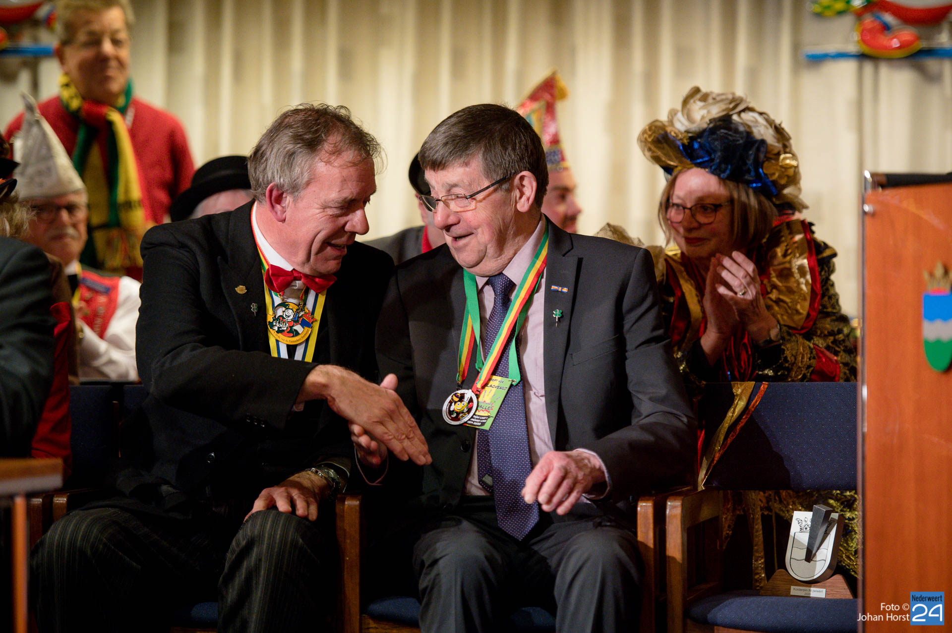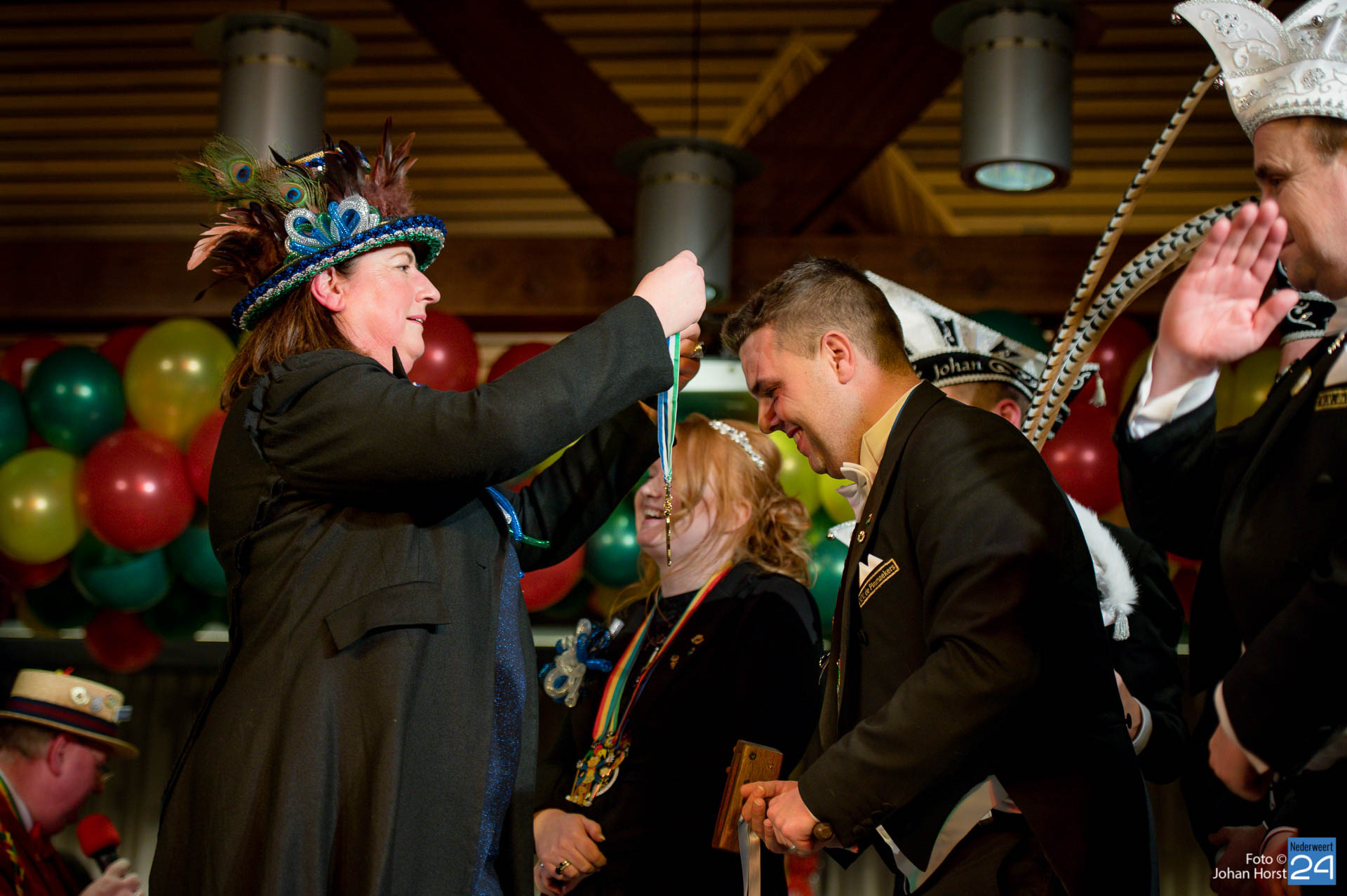De toespraken werden afgewisseld met mooie optredens van lokale artiesten. Omstreeks 20.20 uur maakte Opperpin Birgit Op de Laak van Nederweert bekend dat de Kolderpin-onderscheiding dit jaar wordt toegekend aan pastoor André Koumans (77 jaar) uit Ospel. Deze eervolle gemeentelijke onderscheiding werd dit jaar voor de 35e keer uitgereikt. De Kolderpin wordt jaarlijks uitgereikt aan een Nederweertenaar die zich verdienstelijk maakt voor de Vastelaovendj in het bijzon­der en voor de gemeenschap in het algemeen en/of in het afgelopen jaar een serieus probleem op een ludieke wijze onder de aandacht heeft gebracht.