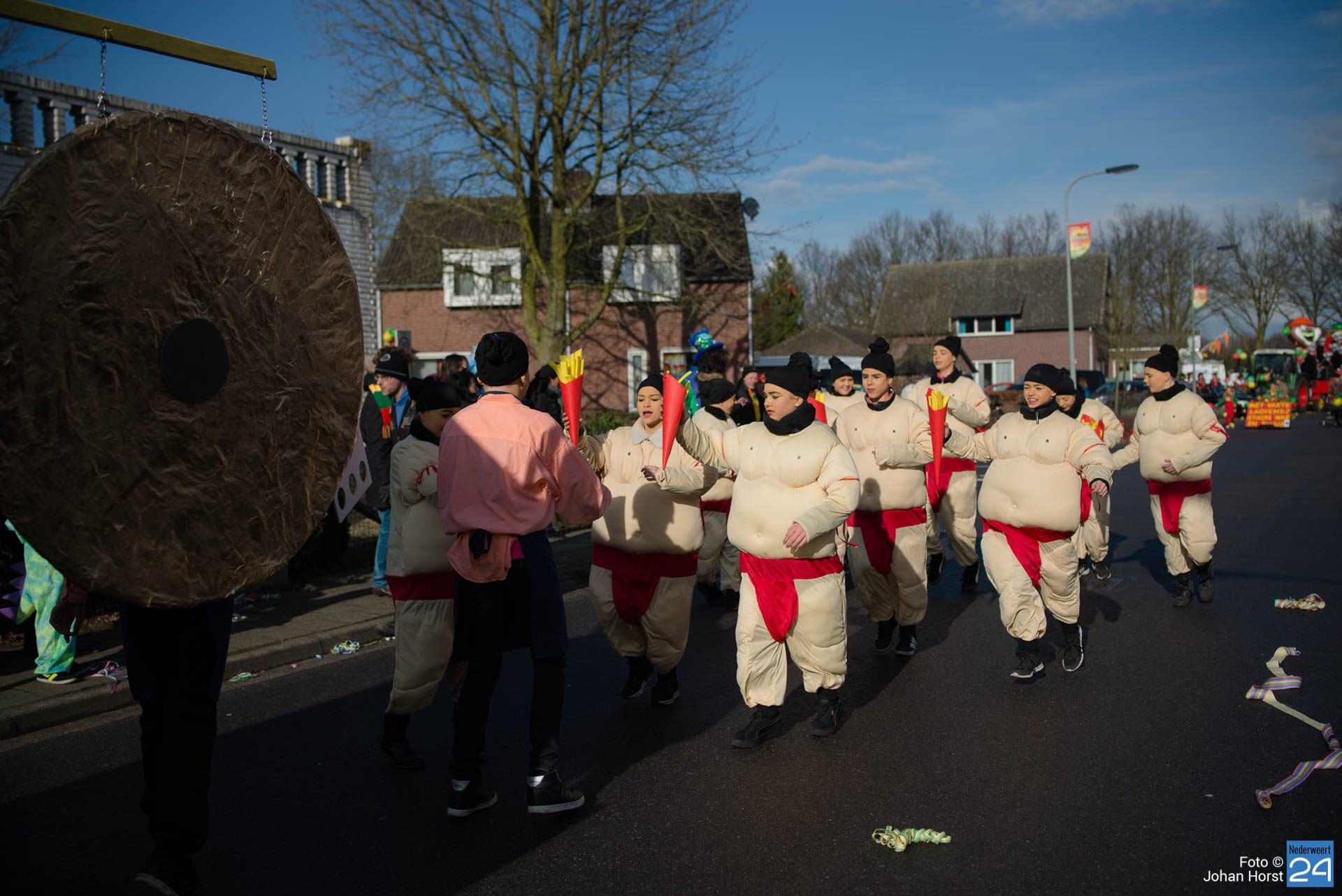 Maandagmorgen trok de carnavalsoptocht van CV De Moerebuuk door de straten van Ell. Vanaf Eetcafé De Prairie vertrok de stoet voor een rondje door het dorp. De deelnemende groepen zorgden zoals elk jaar weer voor een kleurrijk geheel.