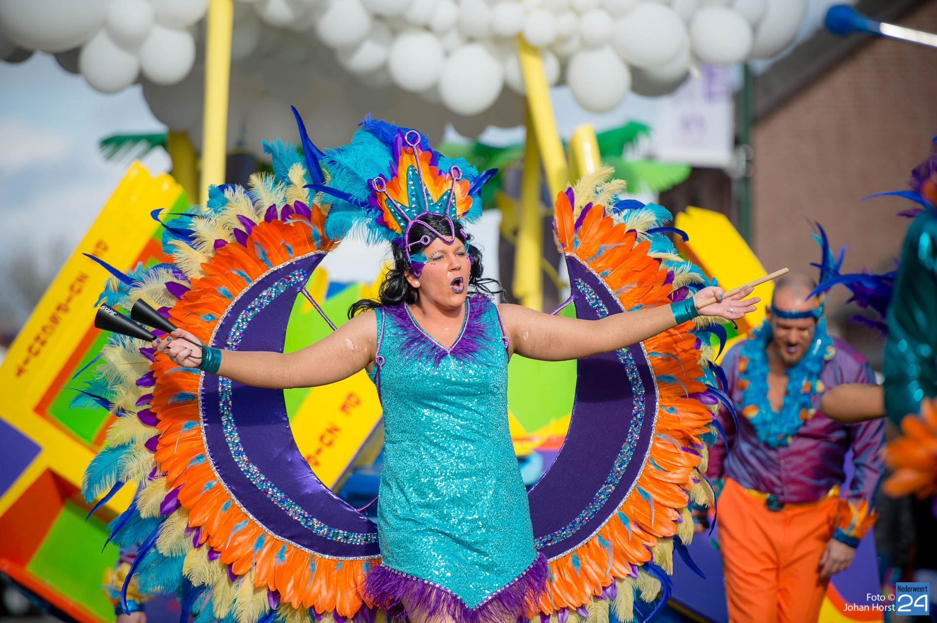 Liefde, dansen, plezier, muziek. Zomaar wat thema’s die de inspiratie vormden voor de deelnemers aan de optocht in Budel. De groepen waren kleurrijk uitgedost en hadden goed uitgevoerde acts ingestudeerd. Veel van de groepen waren onderdeel van grote praalwagens. Deelnemers kwamen van een wat grotere afstand en vonden het een eer om in deze optocht te mogen rondtrekken. Het oergevoel van carnaval kon je hier zeker ervaren.
