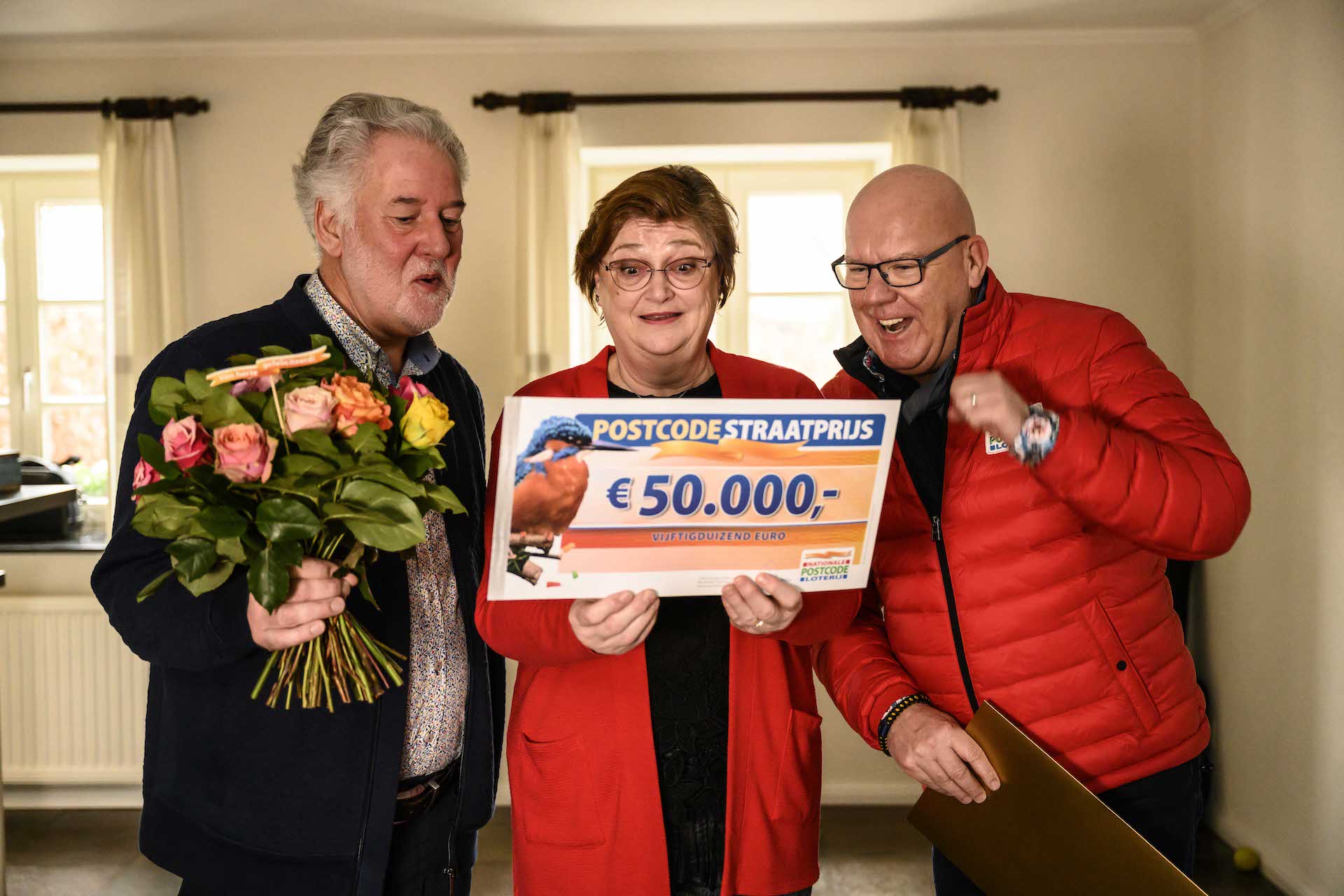 Winnaars Koen en Margot vertellen blij: “Nu kunnen we met de kindjes en de familie naar Nieuw-Zeeland. Dat is een lang gekoesterde wens van ons. Geweldig!” Jos en Sally winnen op de valreep een PostcodeStraatprijs op hun oude postcode: “We zijn nét verhuisd, maar hadden onze loten toch nog op het oude adres laten staan. Ongelofelijk dat ons dit overkomt. Van deze prijs gaan we in het nieuwe huis een hobbykamer maken.”