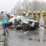 De brandweer heeft de bestuurder uit zijn benaderde positie bevrijdt met hydraulisch gereedschap. De man is daarna met onbekende verwondingen overgebracht naar het ziekenhuis. De weg is voorlopig dicht voor het verkeer in beide richtingen. De politie onderzoekt de toedracht van het verhaal. De bestuurder uit tegengestelde richting kwam met de schrik vrij.