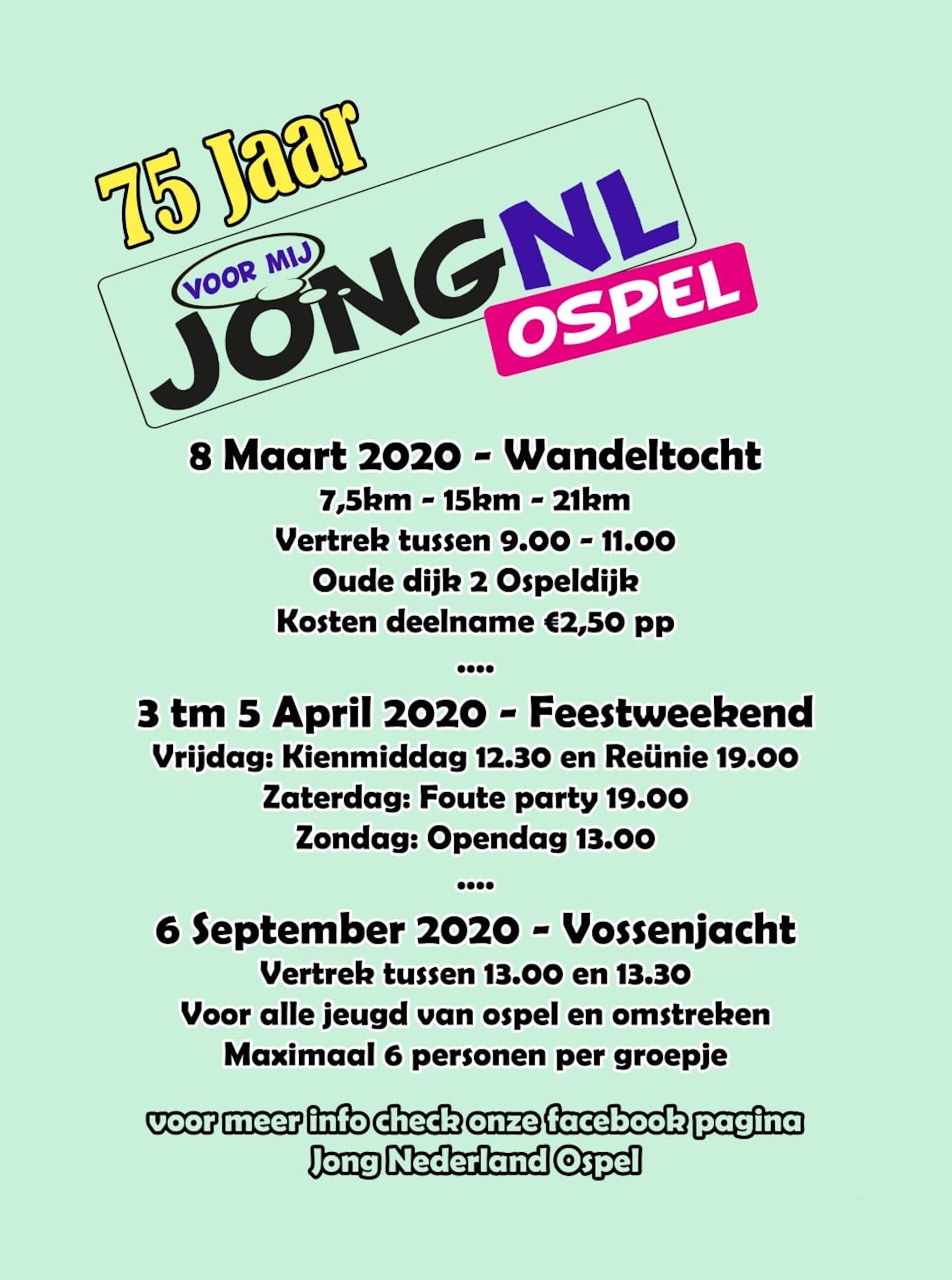 Ter ere van het 75 jarig bestaan van Jong Nederland Ospel organiseren ze allerlei festiviteiten. Voordat ze gaan feesten beginnen ze echter gezond met een wandelevenement voor jong en oud.