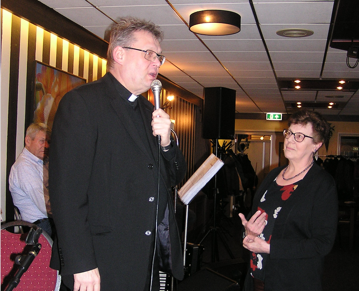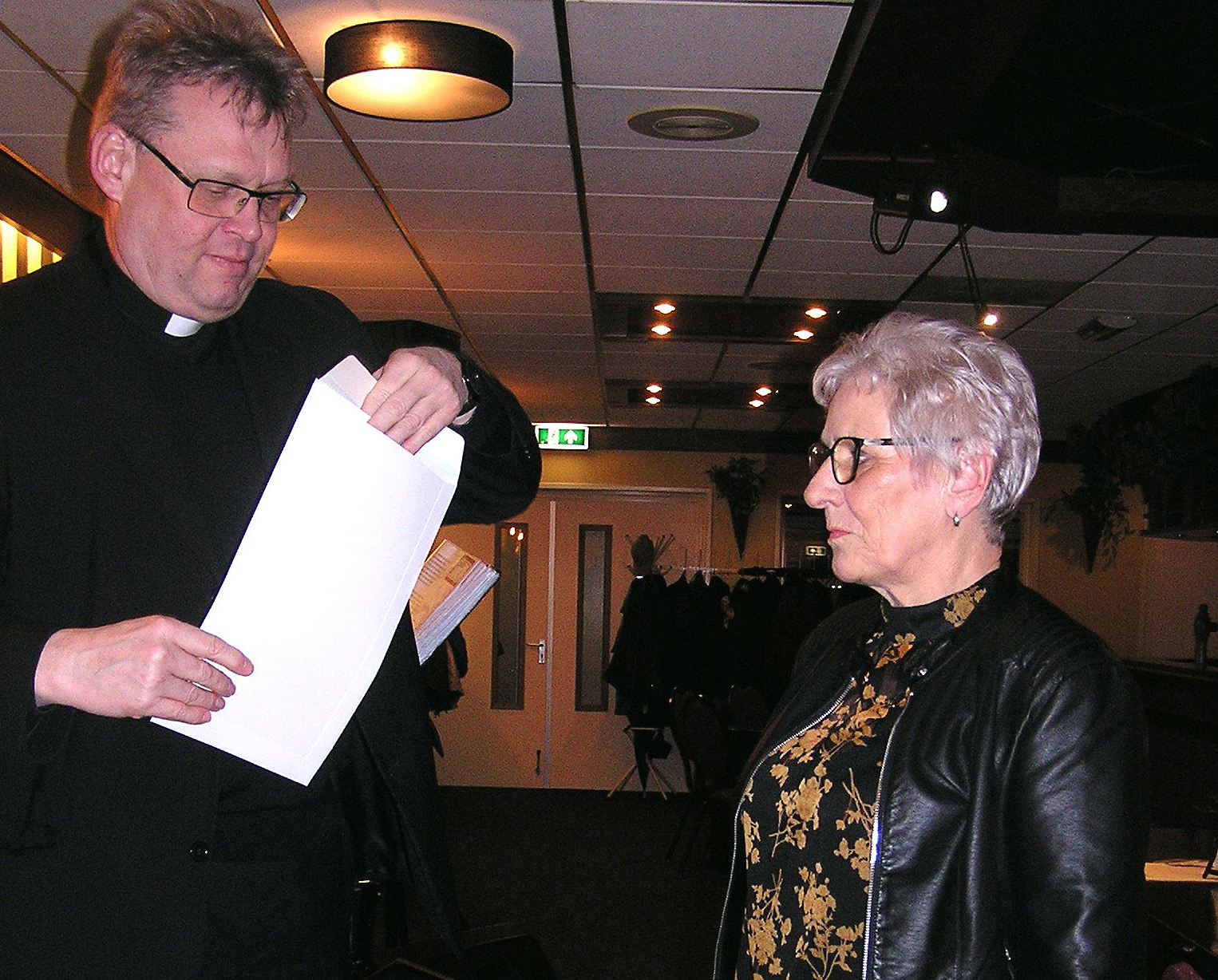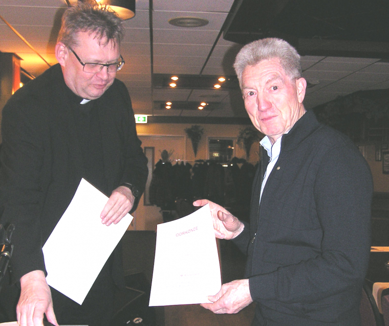 Enkele vrijwilligers die voor het vrijwilligersinsigne in aanmerking kwamen en niet aanwezig, waren zullen binnenkort bezoek van pastoor kunnen verwachten die hun thuis het insigne met oorkonde zal uitreiken.