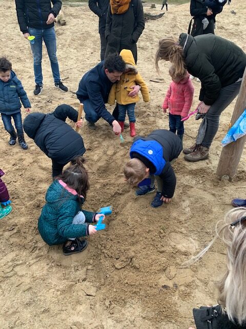 Het zoekgebied naar de schatten van kapitein Schobbejak lag in dagcamping de Houtsberg in Nederweert-Eind. Er waren maar liefst drie schatten verstopt. De kinderen, verkleed als piraten en prinsessen, zochten als echt speurneuzen. Na uitgebreid graafwerk werden alle schatten gevonden. Soms met een beetje hulp van de papa’s en mama’s. De oudercommissie had natuurlijk voor een hapje en drankje gezorgd. Dat ging er wel in na het harde werken. Ondanks de kou was het een geslaagde ochtend.