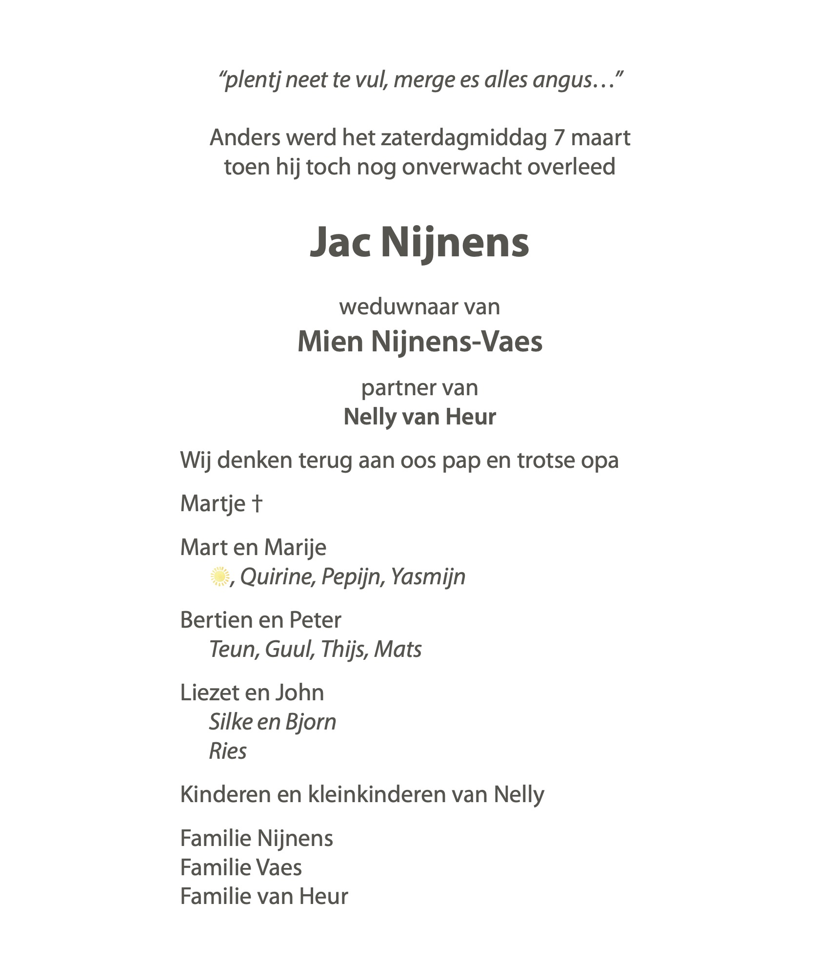 Familie Nijnens Heel veel sterkte voor nu en in de komende tijd
