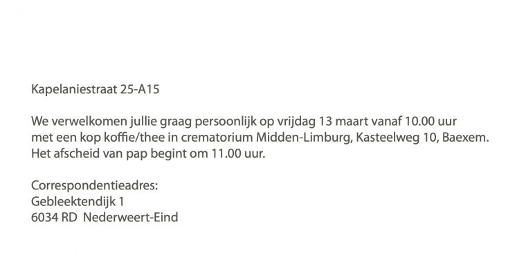 Neelie en de familie Nijnens heel veel sterkte gewenst