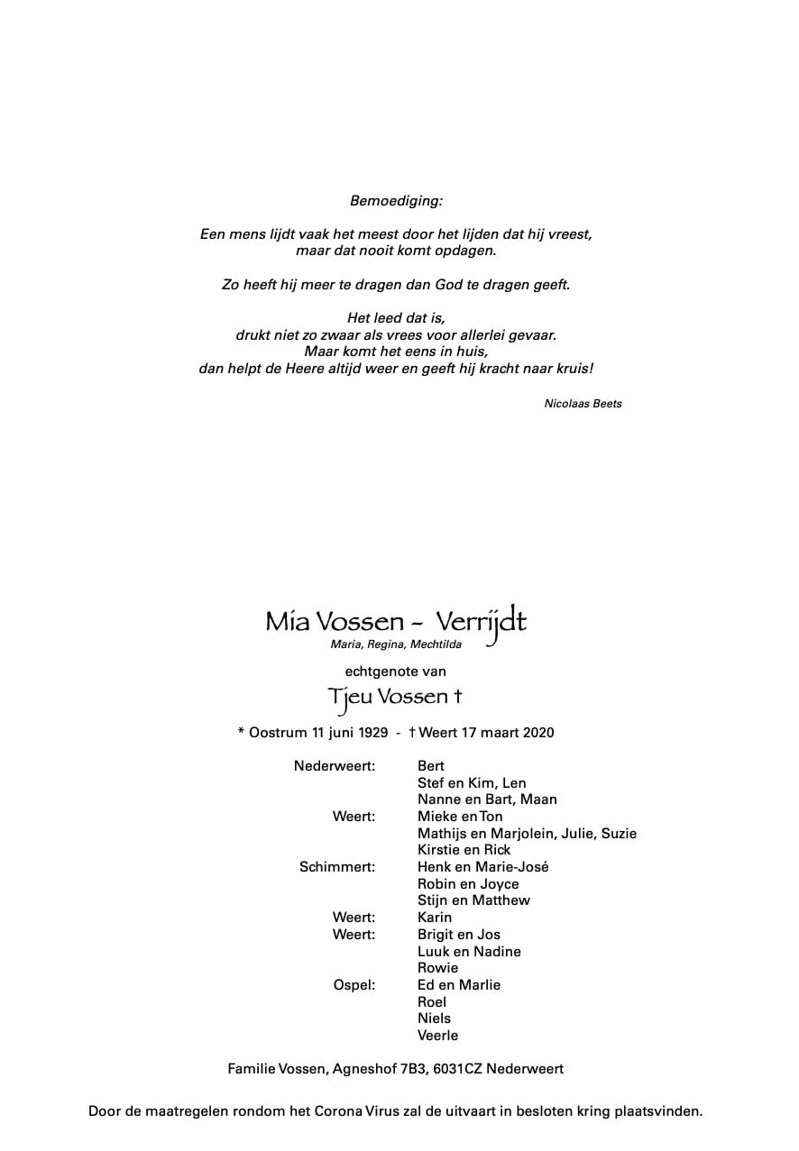 Overlijdensbericht: Mia Vossen – Verrijdt