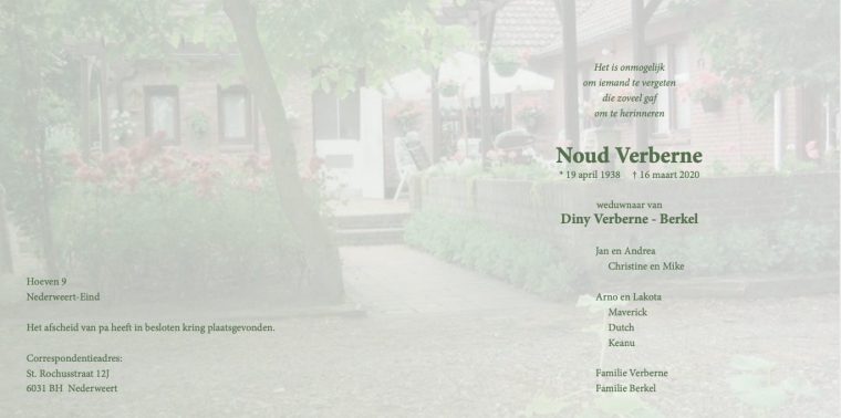 JAN en Arno, partners, kinderen en verdere familie gecondoleerd met het verlies van je vader en veel sterkte bij de verwerking nu en in de nabije toekomst