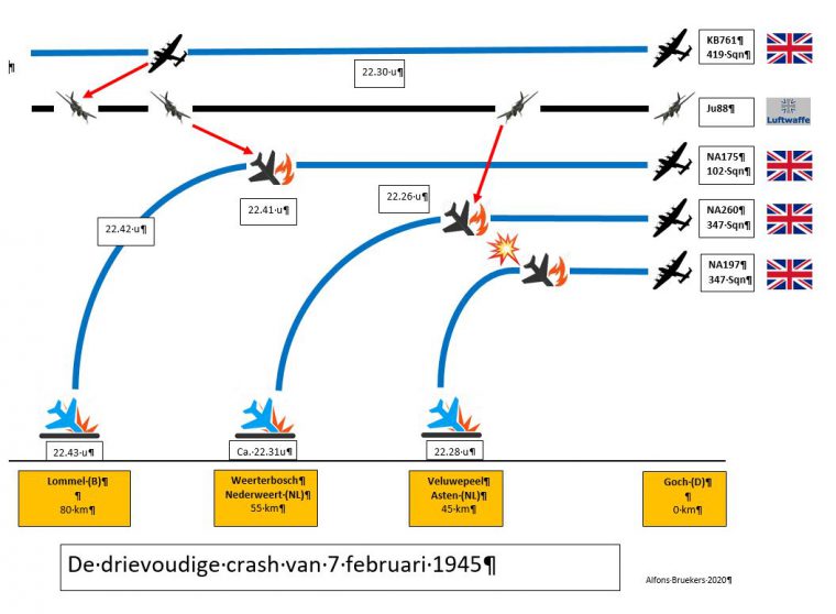 De luchtoorlog die in de slotfase van de Tweede Wereldoorlog, op 7 februari 1945, plaatsvond boven Nederweerts grondgebied kostte veel slachtoffers. Drie geallieerde Halifax-bommenwerpers, waarvan twee met volledig Franse bemanningen, werden door een Duitse jager neergeschoten. Eén kwam er terecht in de Peel bij Asten, en een andere bij de zinkfabriek in Lommel (B).