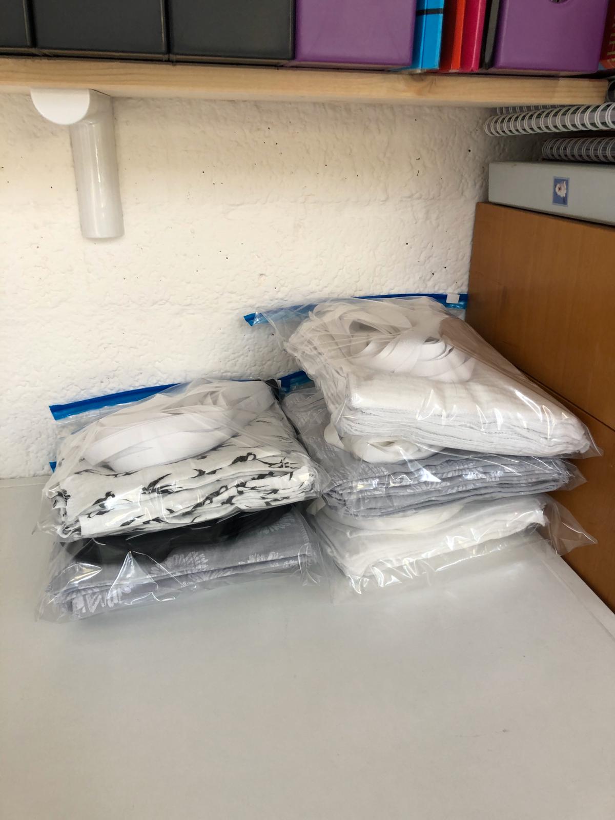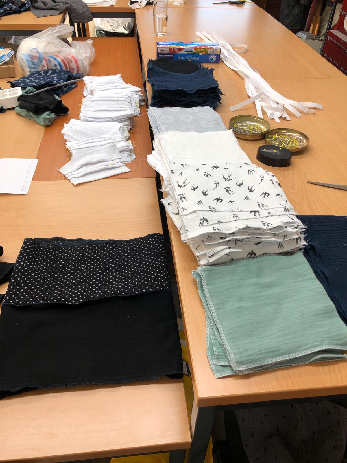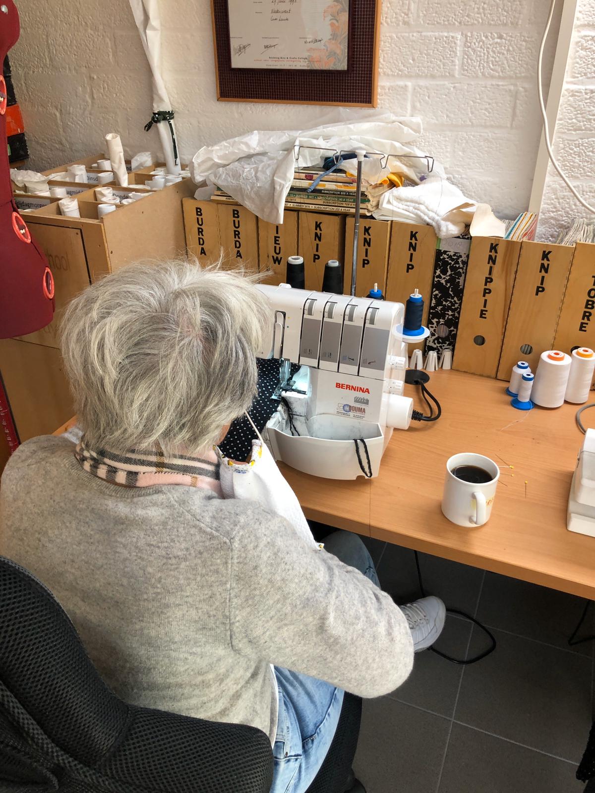 Sinds de extra maatregelen van maandag werken er niet meer dan zes personen tegelijk in het atelier van Maria. Ze houden anderhalve meter afstand, dragen zelf mondkapjes en er wordt streng gehandhaafd op handenwassen. Verder werken er twintig vrouwen vanuit huis aan het in elkaar zetten van mondkapjes. Een organisatie van jewelste, uitgezet in slechts een paar dagen tijd. Het getuigt de kracht van samenwerken, al is het op afstand.