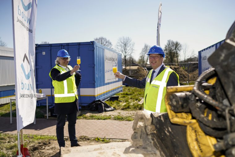 Foto: Regiodirecteur Michiel Werkhoven van Janssen de Jong Projectontwikkeling en wethouder Peter Koolen (r) waren samen, op gepaste afstand van elkaar, aanwezig bij de start van het project