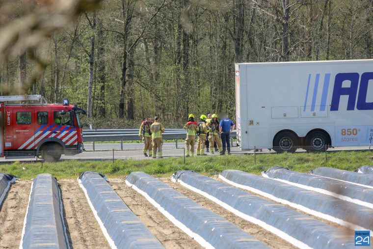 De bestuurder zag rook aan de achterzijde van de oplegger. Hij belde 112 en wist het gevaarte veilig te parkeren op de vluchtstrook bij de afrit Kelpen-Oler. Na een eerste inspectie door de brandweerlieden werd de vrachtwagen geparkeerd in de berm op de N280 in Weert. Met een warmtebeeldcamera werd een laatste controle uitgevoerd.