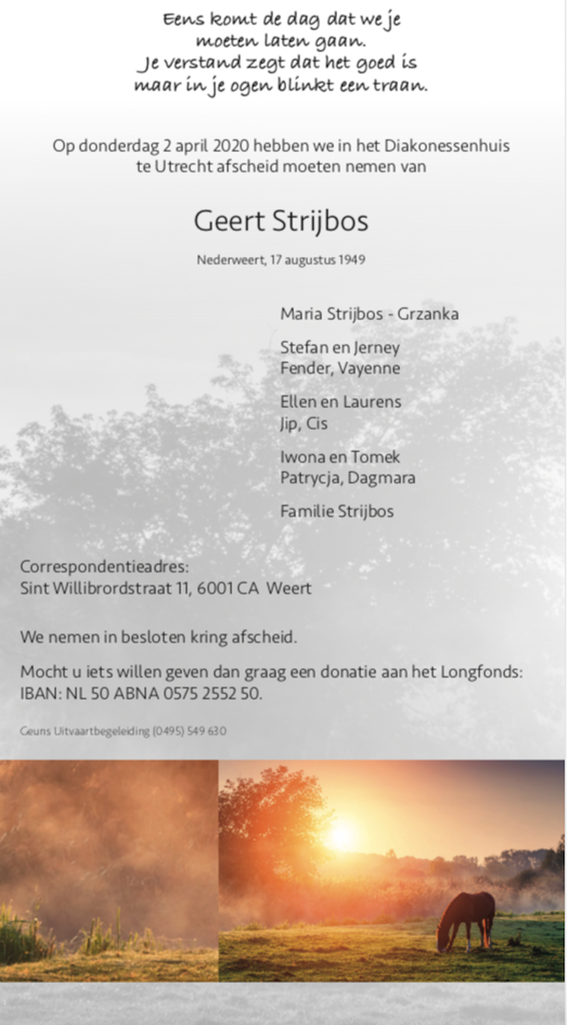 Overlijdensbericht: Geert Strijbos
