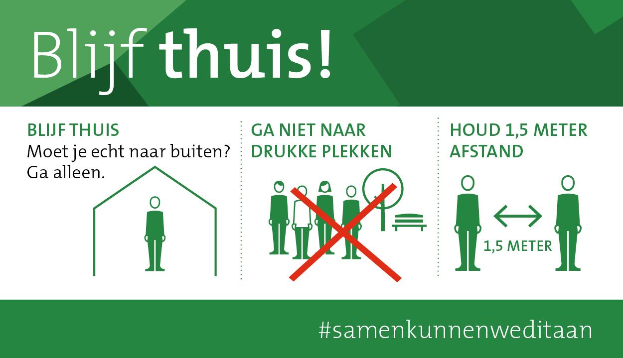 - Blijf zoveel mogelijk thuis en stop de verspreiding van het Coronavirus.