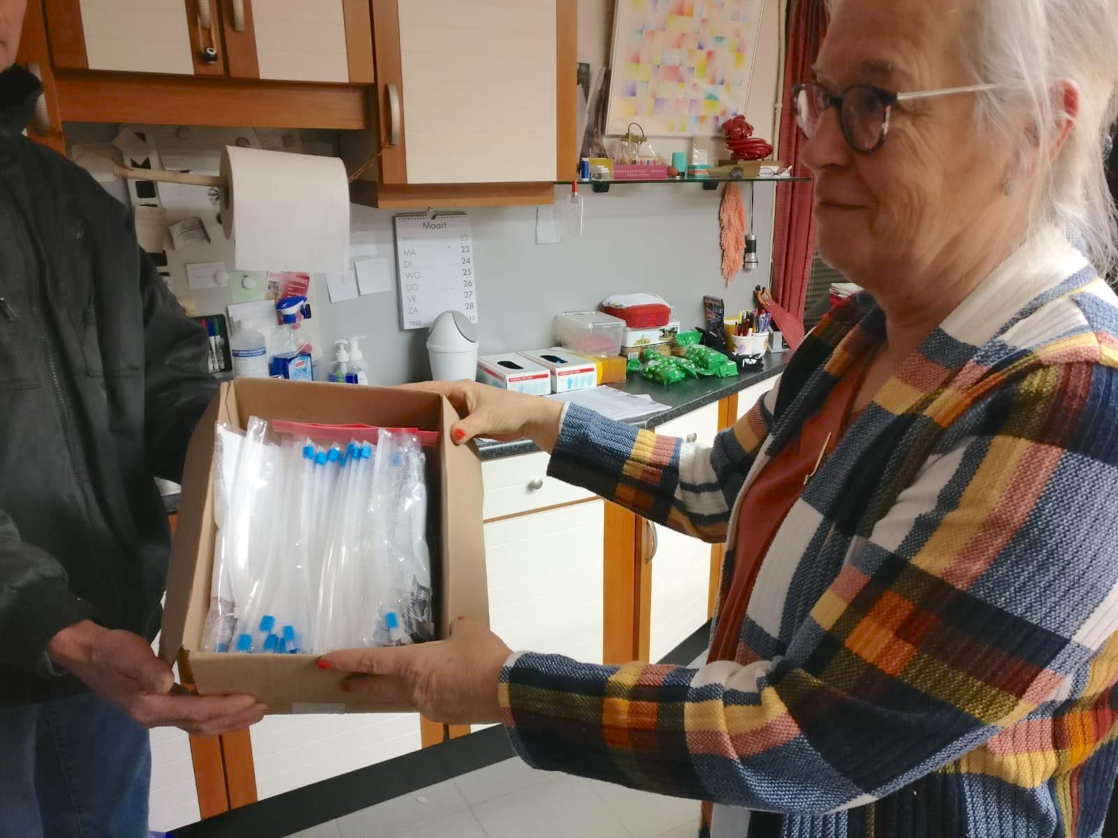 Het merendeel werkte vanuit thuis. Dat bracht een hele organisatie met zich mee, iets dat ook binnen een paar dagen geregeld was. Bas transformeerde in een wervelwind en nam een week vakantie op om alles in goede banen te leiden. Maria was bijna dag en nacht bezig en legde zichtbaar haar ziel in de mondkapjes. Om een beetje uit de kosten te komen vroegen we mensen om te doneren. Als we daar al een paar honderd euro mee ophaalde, waren we zeer tevreden. Het ging als een raket, kan ik je verklappen. Via deze weg willen we ook jullie hartelijk bedanken, want met die donaties konden we vooruit en wisten we dat er draagvlak was. Een fundament gebouwd op saamhorigheid.