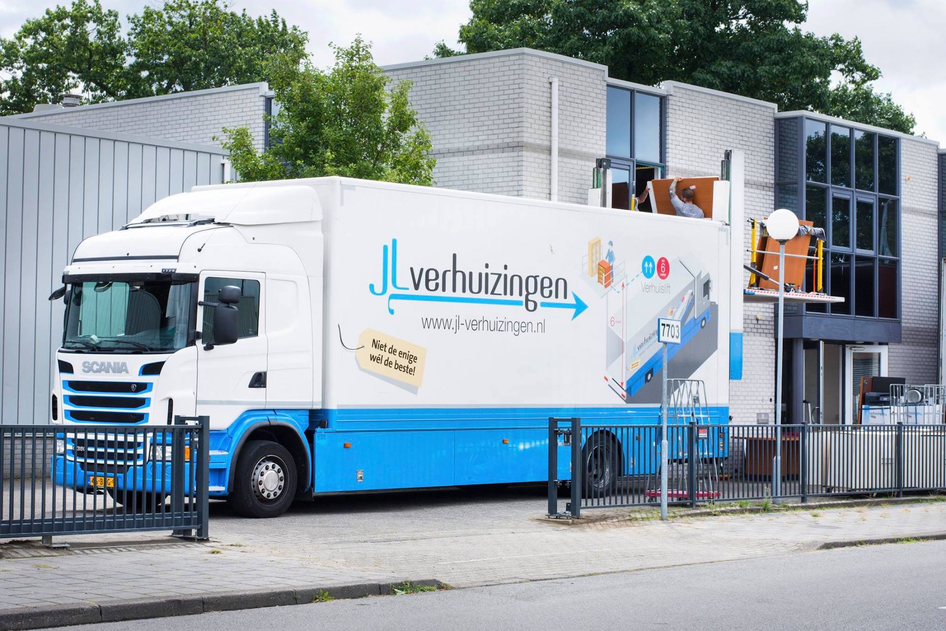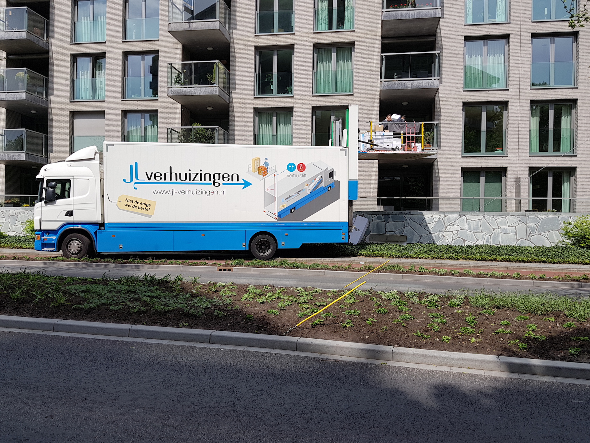 JL-Verhuizingen beschikt zelfs over een verhuiswagen met een laadklep plateau van 2,5 bij 3 meter en kan tot wel 6 meter hoog!