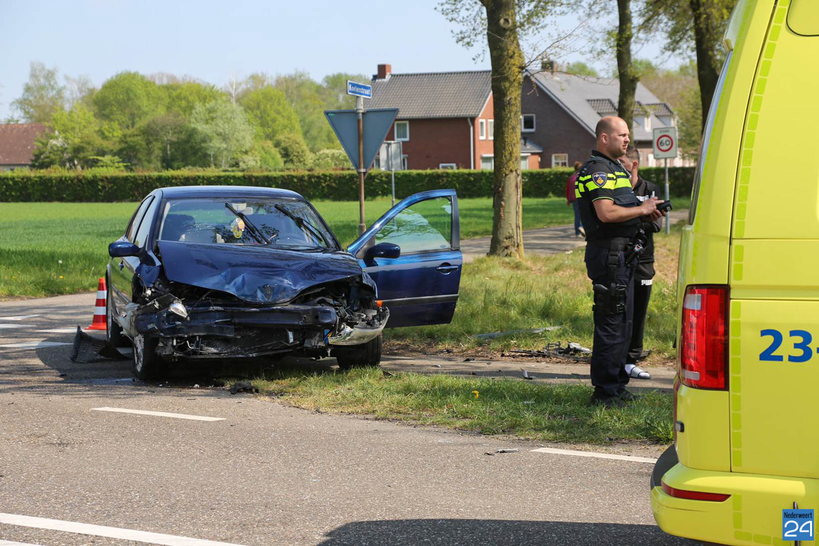 Twee personenauto’s zijn zondagmiddag hard met elkaar in botsing gekomen in Baexem. Een persoon is daarbij gewond geraakt.