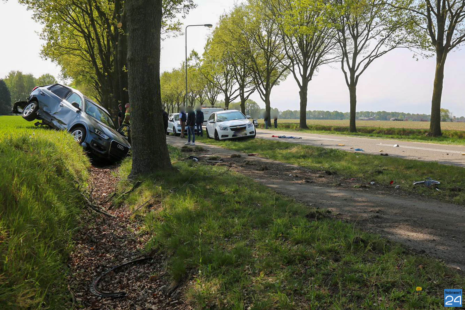 Het ongeval gebeurde iets na 13.00 uur op de Stationstraat bij de kruising met de Schoorstraat. Hoe de twee voertuigen met elkaar in botsing konden komen is nog niet geheel duidelijk. De politie stelt een onderzoek in. Eén van de voertuigen kwam in de greppel terecht