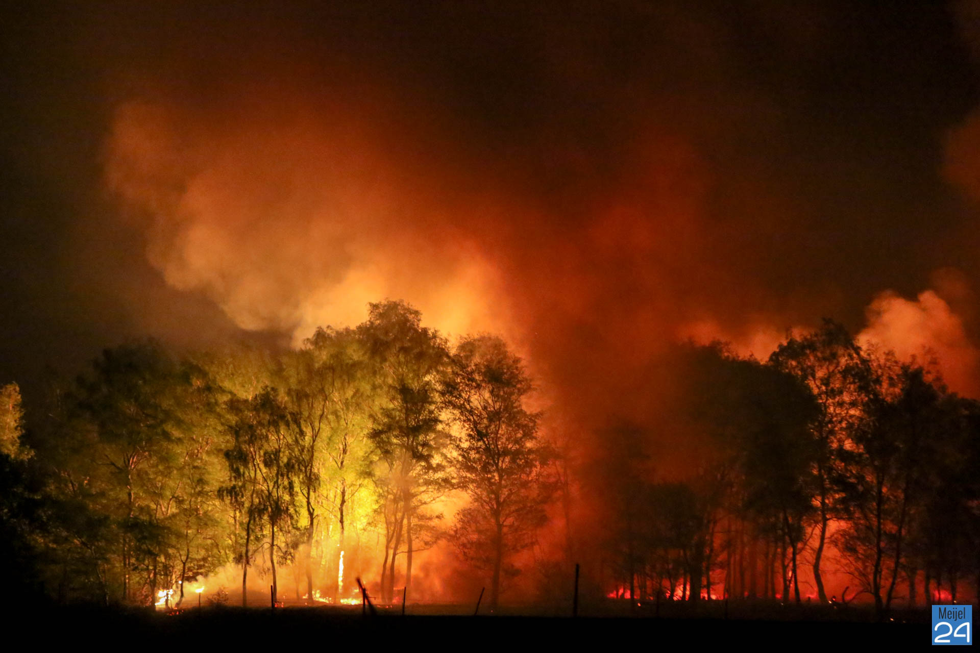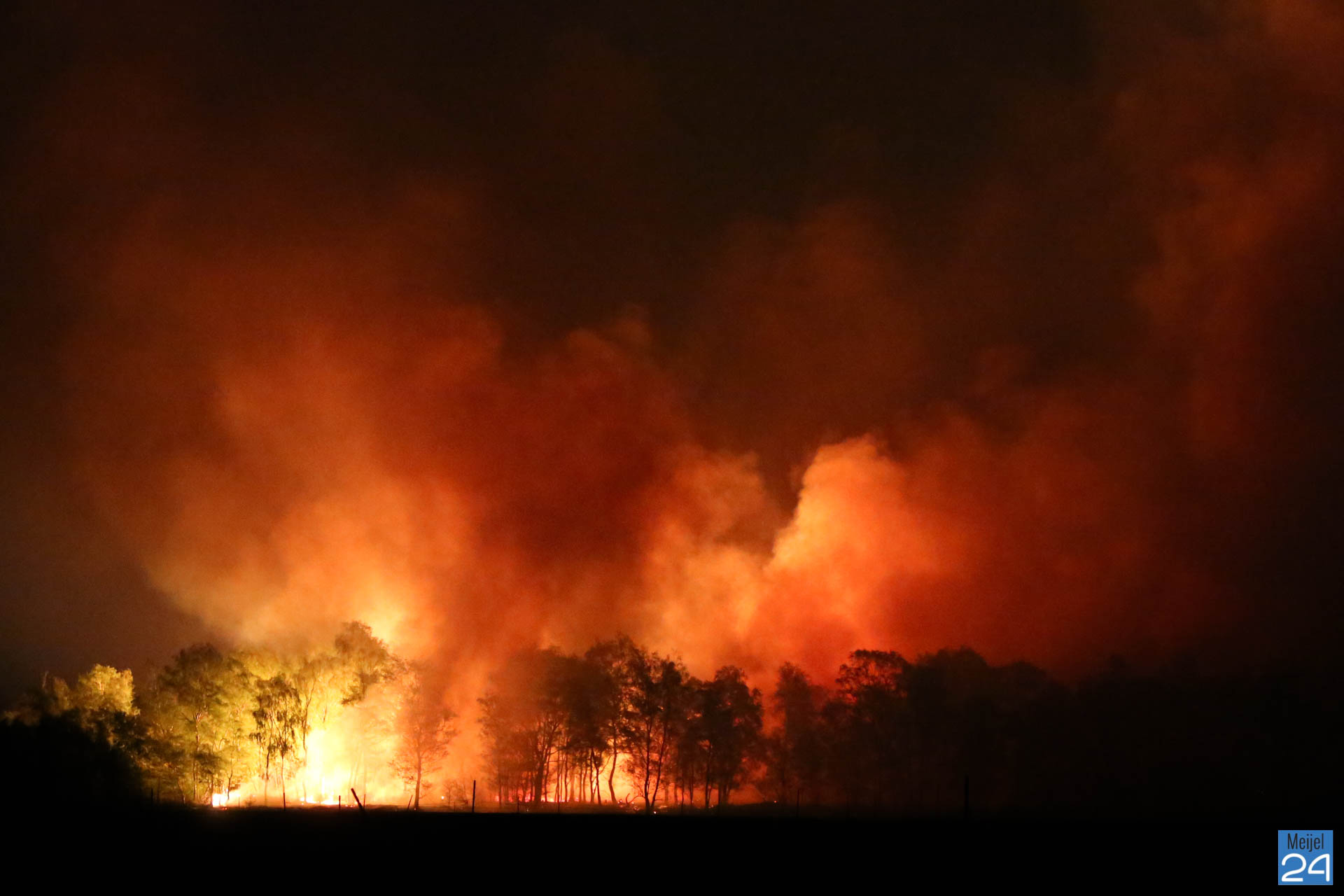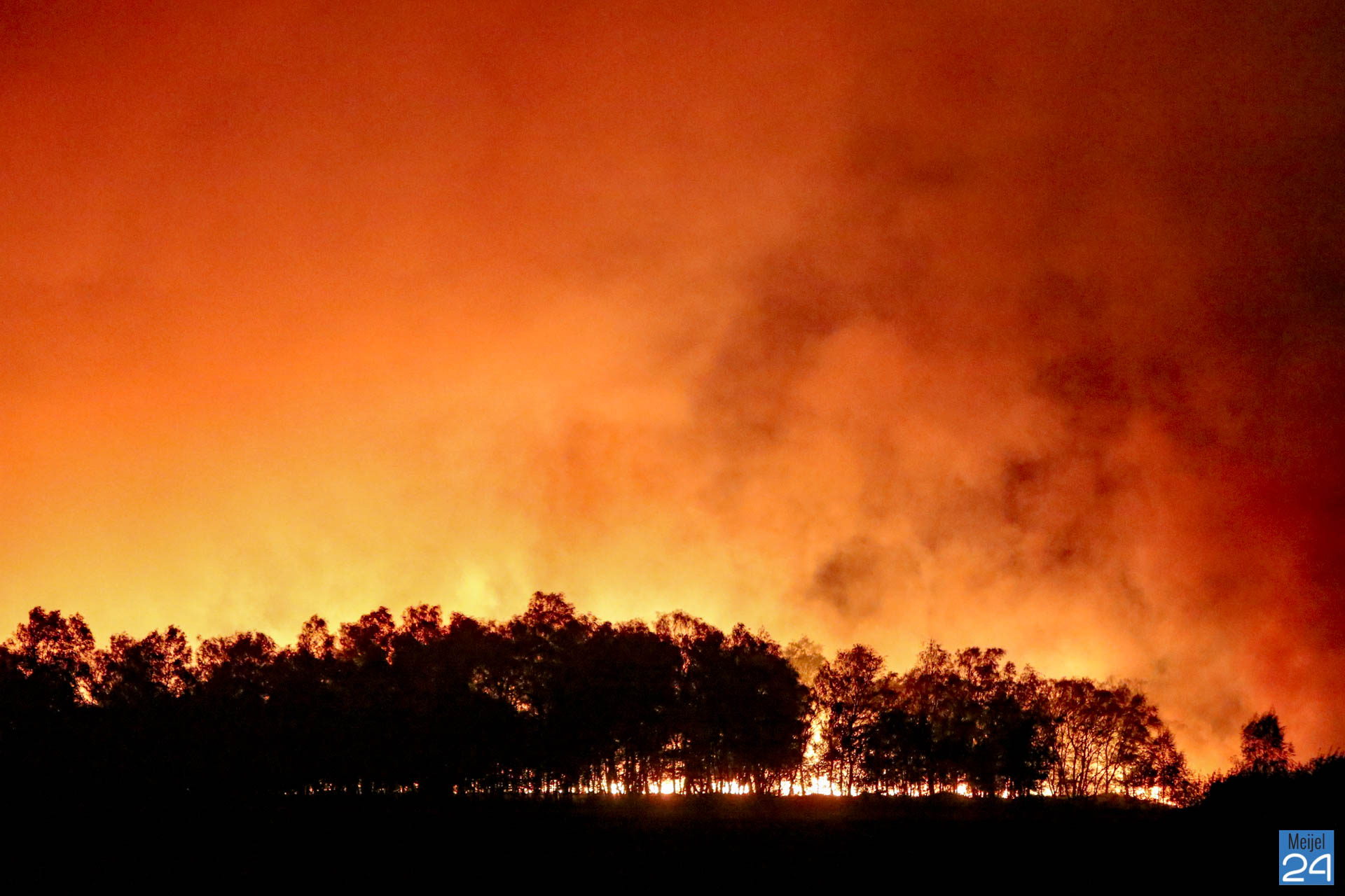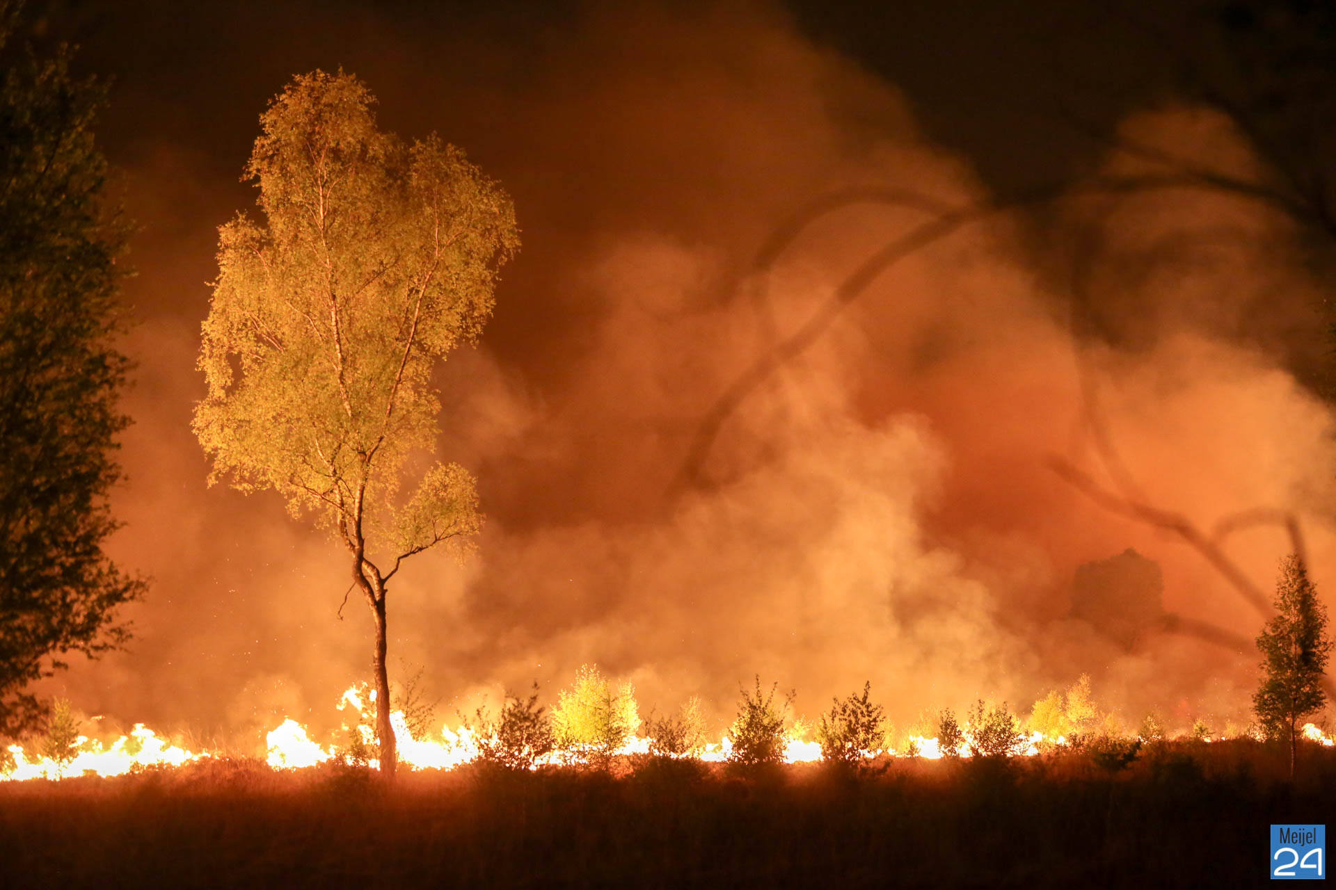 De Peelbrand is nog altijd niet onder controle. Afgelopen nacht zijn brandweerkorpsen uit de verre omtrek bezig geweest om de enorme brand te blussen. 14 bluseenheden, waarvan 8 uit de regio Utrecht, hebben vannacht met man en macht gewerkt.