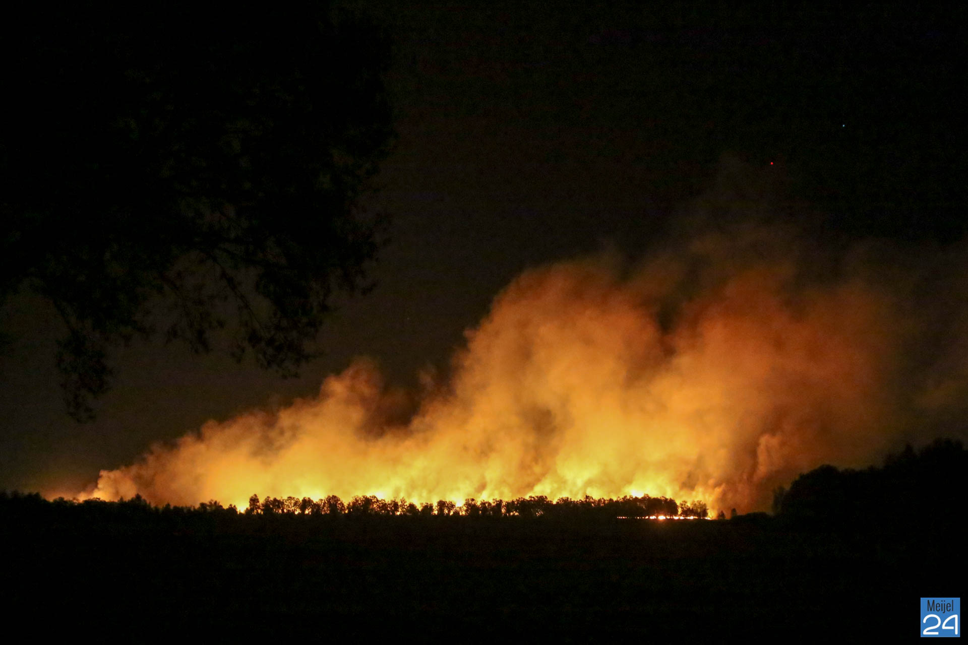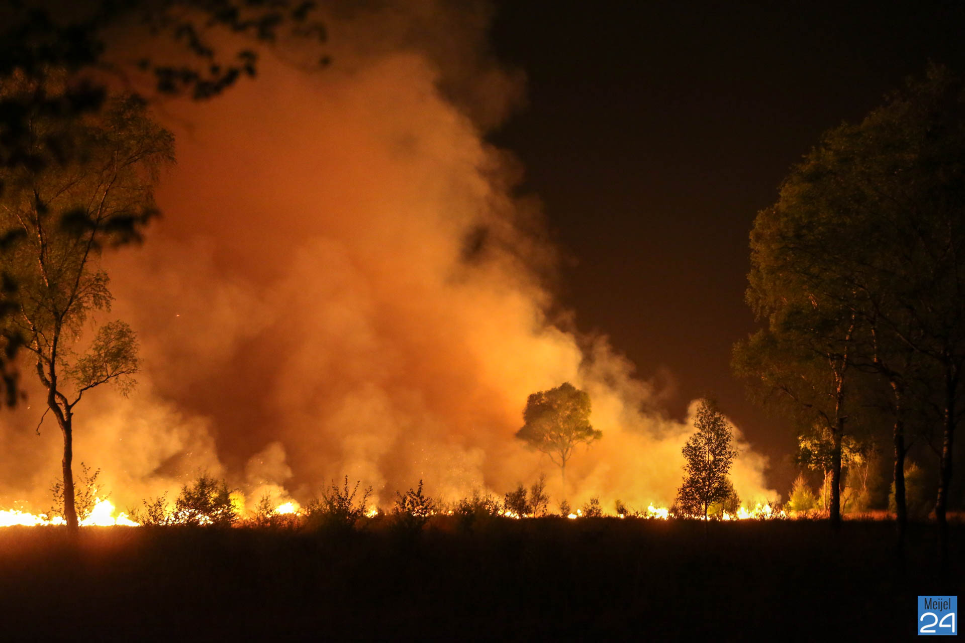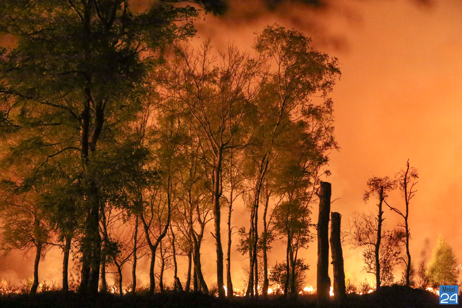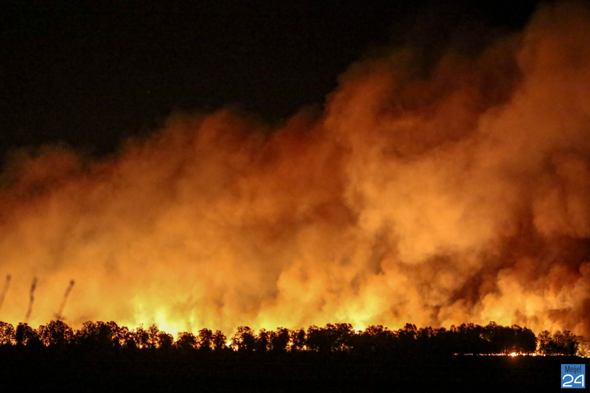 De Peelbrand is nog altijd niet onder controle. Afgelopen nacht zijn brandweerkorpsen uit de verre omtrek bezig geweest om de enorme brand te blussen. 14 bluseenheden, waarvan 8 uit de regio Utrecht, hebben vannacht met man en macht gewerkt.