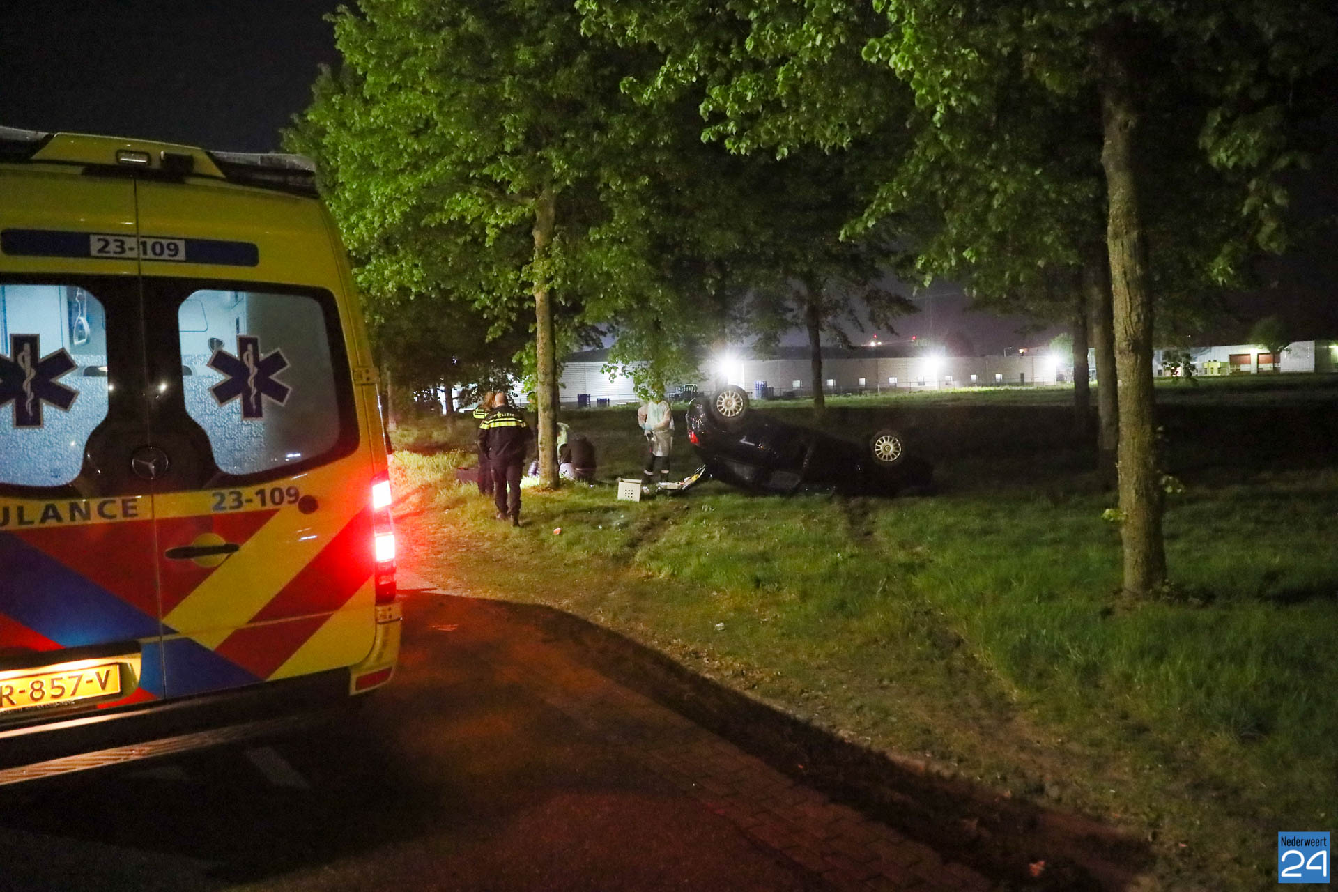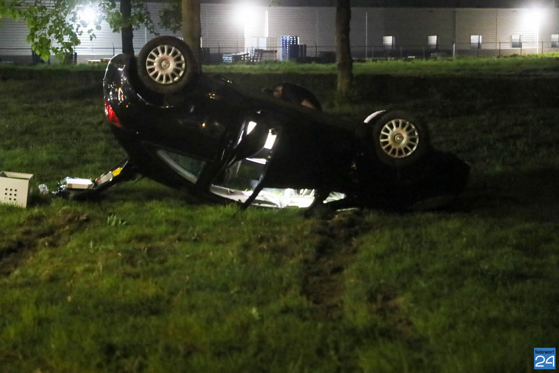 In de nacht van donderdag op vrijdag is een auto over de kop gevlogen op de Edisonlaan op industrieterrein Kampershoek in Weert.