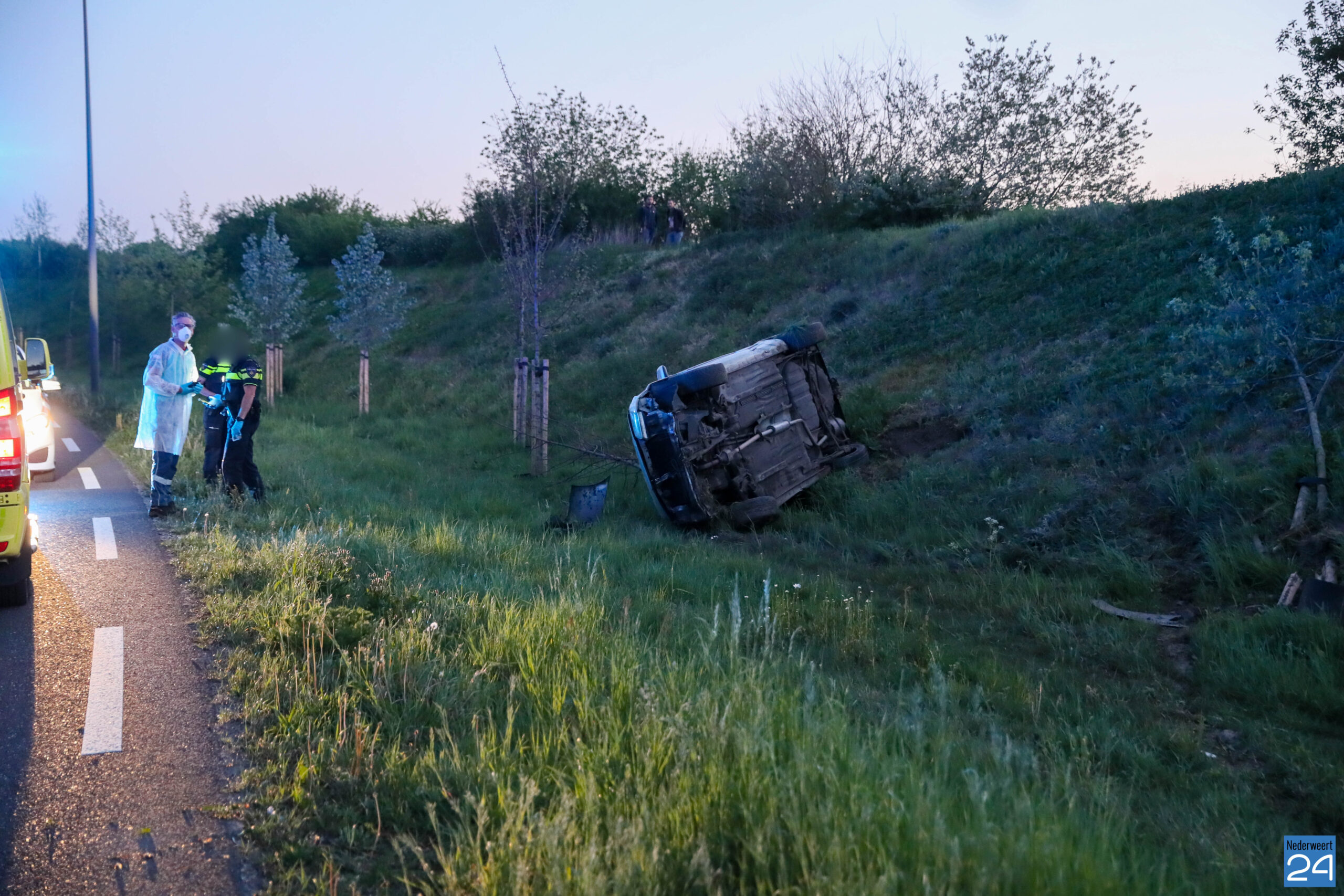 Zaterdagavond rond negen uur is een auto uit de bocht gevlogen op de Ringbaan-West in Weert.