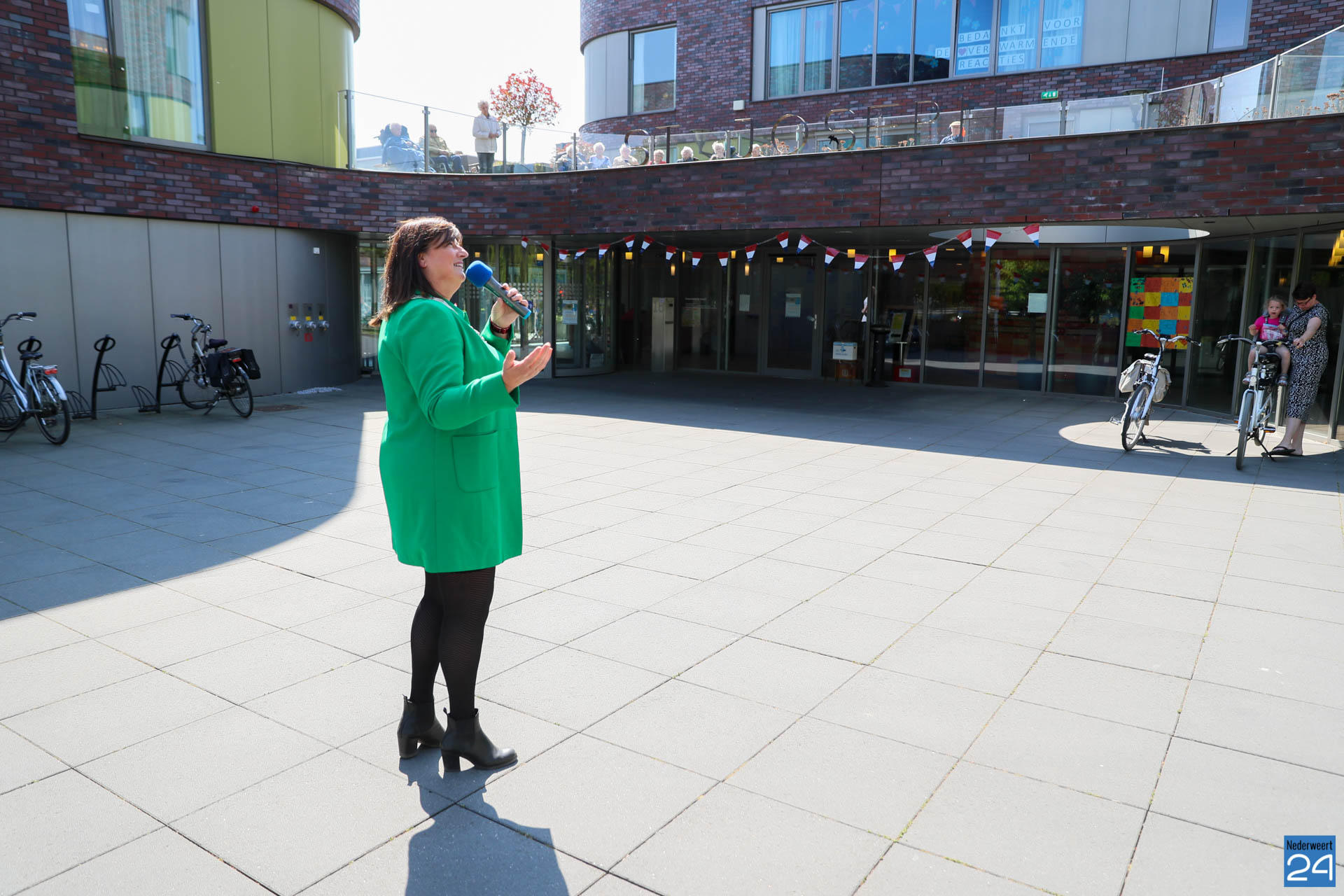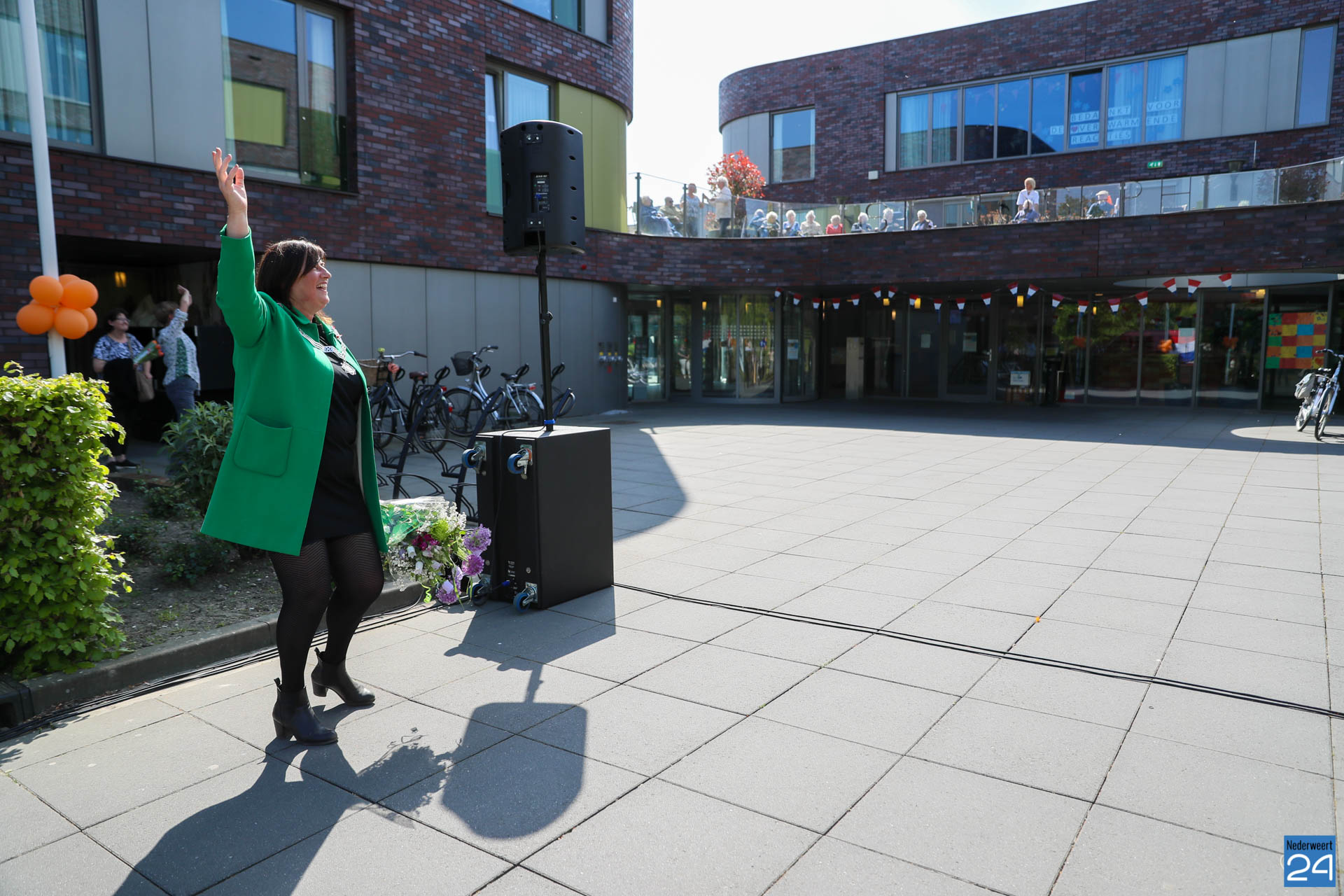 De burgemeester is super trots op de inwoners van Nederweert. “Prachtig om te zien hoe mensen met elkaar omgaan in deze moeilijke tijden. Een fantastische Koningsdag in 2020, corona of geen corona, we maken er een mooi feest van“. Na de korte toespraak van de burgemeester stond daar ‘onze‘ Aldje klaar. Ze zong een paar prachtige nummers voor de bewoners. “Geweldig dat ik hier, samen met de burgemeester, een beetje feest en vreugde mag brengen“.