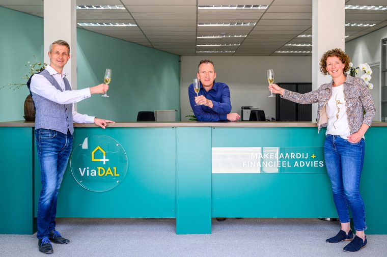 ViaDAL opent zijn deuren met de stille trom. Een vreemde situatie nu de wereld geteisterd wordt door het coronavirus. Dat wat een moment vol vreugde en enthousiasme had moeten zijn, lijkt het nu meer gepast om de vlag halfstok te hangen. Linda: ‘Hoewel we lang hebben toegewerkt naar dit moment, voelt het niet goed om met de huidige gezondheidscrisis een feestelijke opening te organiseren. Dat stellen we uit tot een volgend moment. Dan zijn vrienden, familie en klanten van harte welkom om met ons het glas te heffen. Met inachtneming van de coronamaatregelen kunnen we toch klanten ontvangen op kantoor, hen thuis of online te woord te staan en bezichtigingen organiseren. Vrijdag 1 mei gaan onze deuren open en we proosten zelf alvast op die bijzondere mijlpaal in deze uitzonderlijke tijd.”