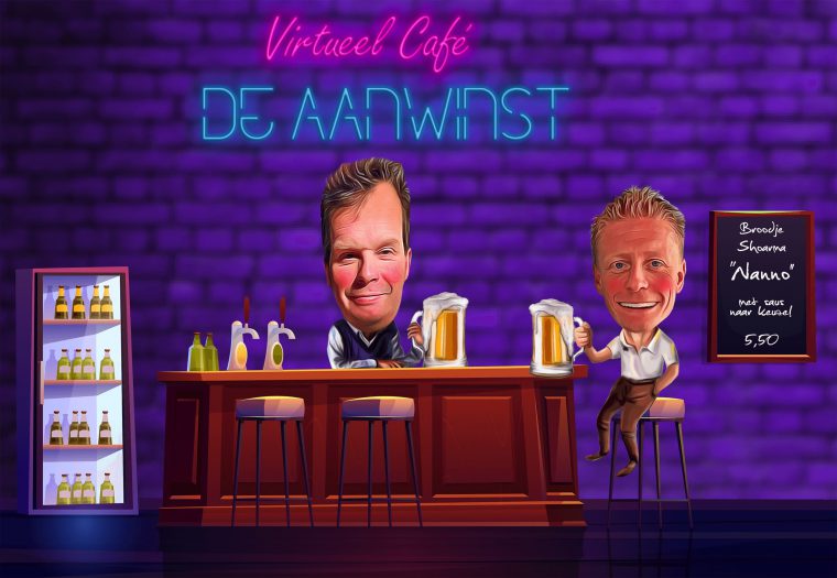 Al vanaf 16 maart zijn de deuren van ons eetcafé gesloten en voor 20 mei mogen ze sowieso niet open. Gezondheid boven alles, maar dat betekent niet dat we onze gasten niet ontzettend missen. Daarom opent op zaterdag 9 mei virtueel café De Aanwinst zijn deur. Vanaf 20.30 uur kan iedereen thuis voor de buis of de laptop “aanschuiven” aan de bar van ons café.