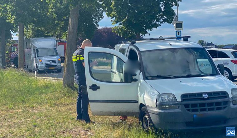 De bestuurder van de bestelbus heeft een blaastest moeten uitvoeren. De weg is tijdelijke afgesloten voor het verkeer.
