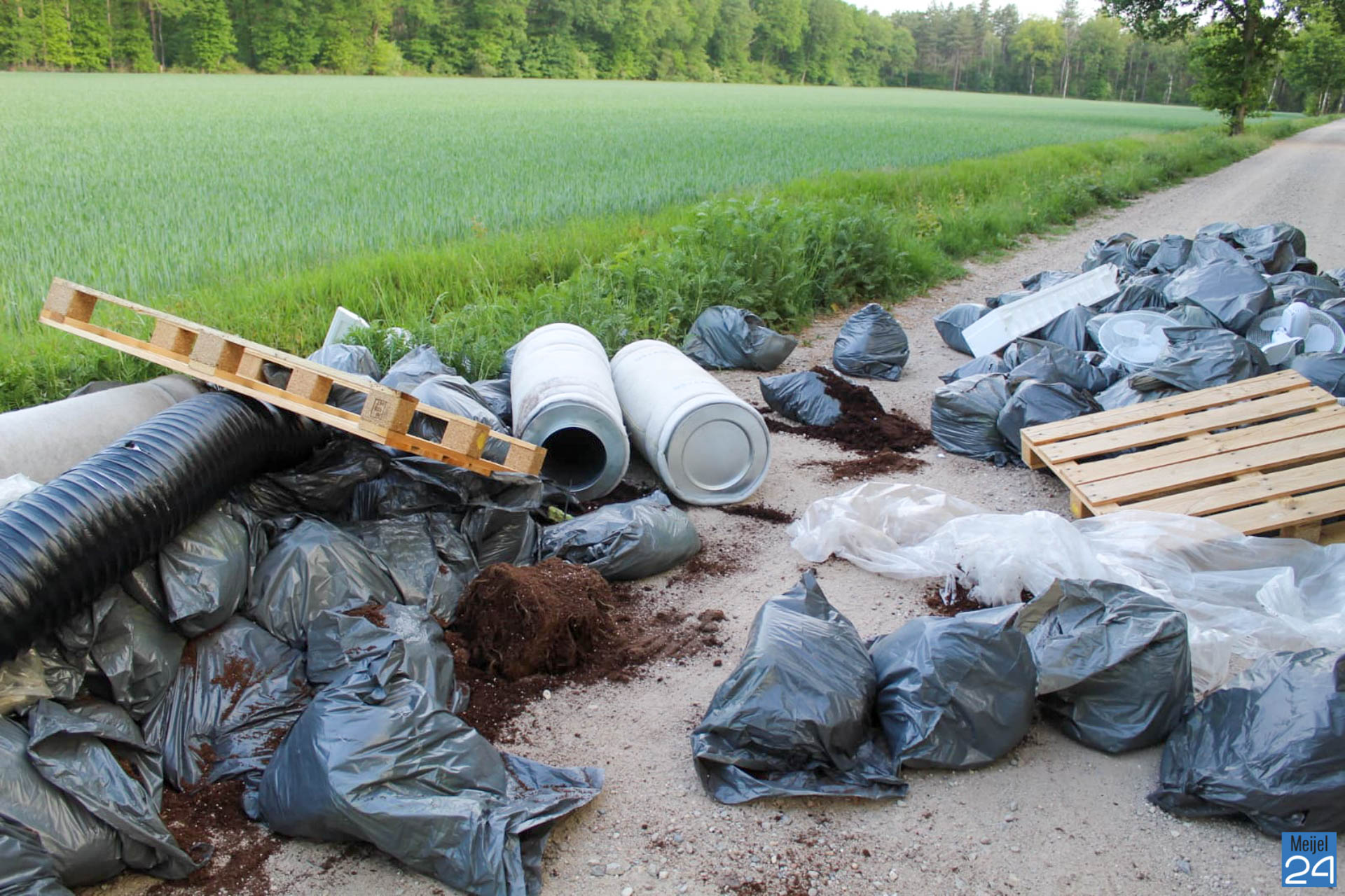 Een voorbijganger trof het afval aan op een zandweg in het buitengebied van Roggel. De politie kwam ter plaatse en stelt een onderzoek in. De gemeente Leudal is ingeschakeld om het afval op te ruimen.