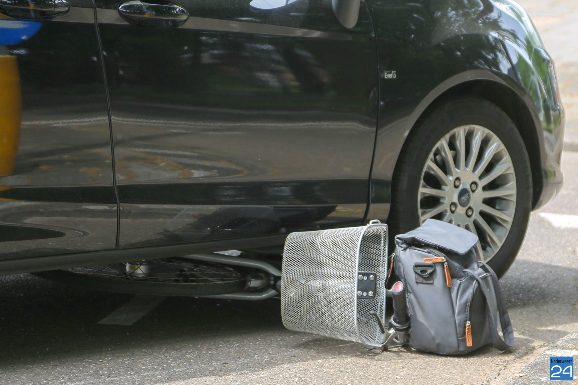 De fiets kwam na de aanrijding onder het voertuig te liggen. De vrouw is met onbekende verwondingen overgebracht naar het ziekenhuis. De automobilist kwam met de schrik vrij.