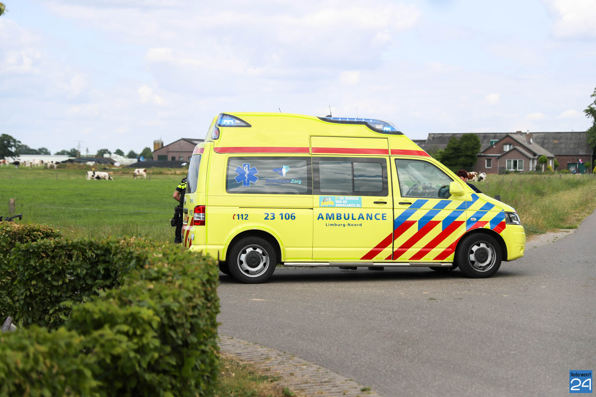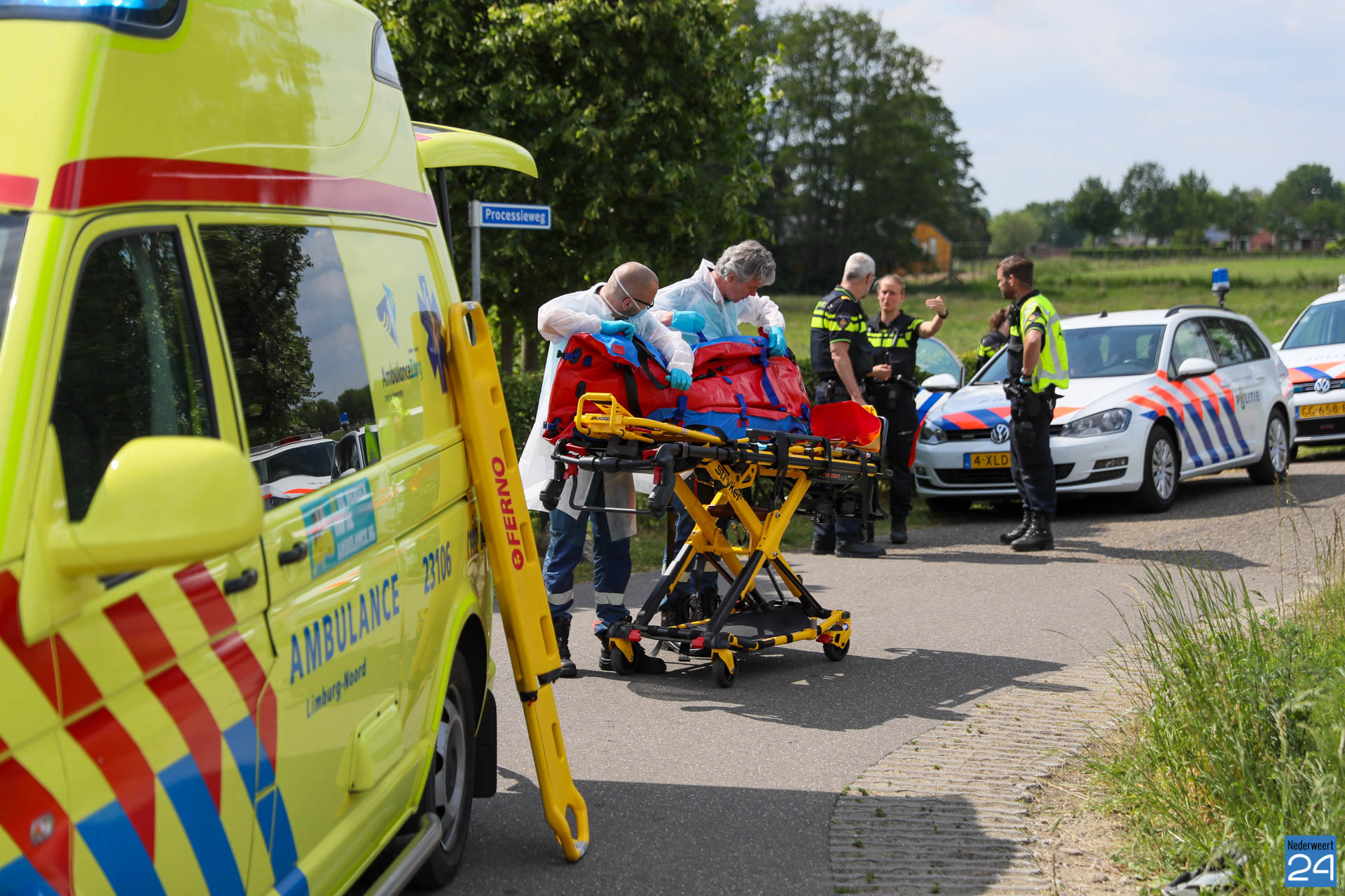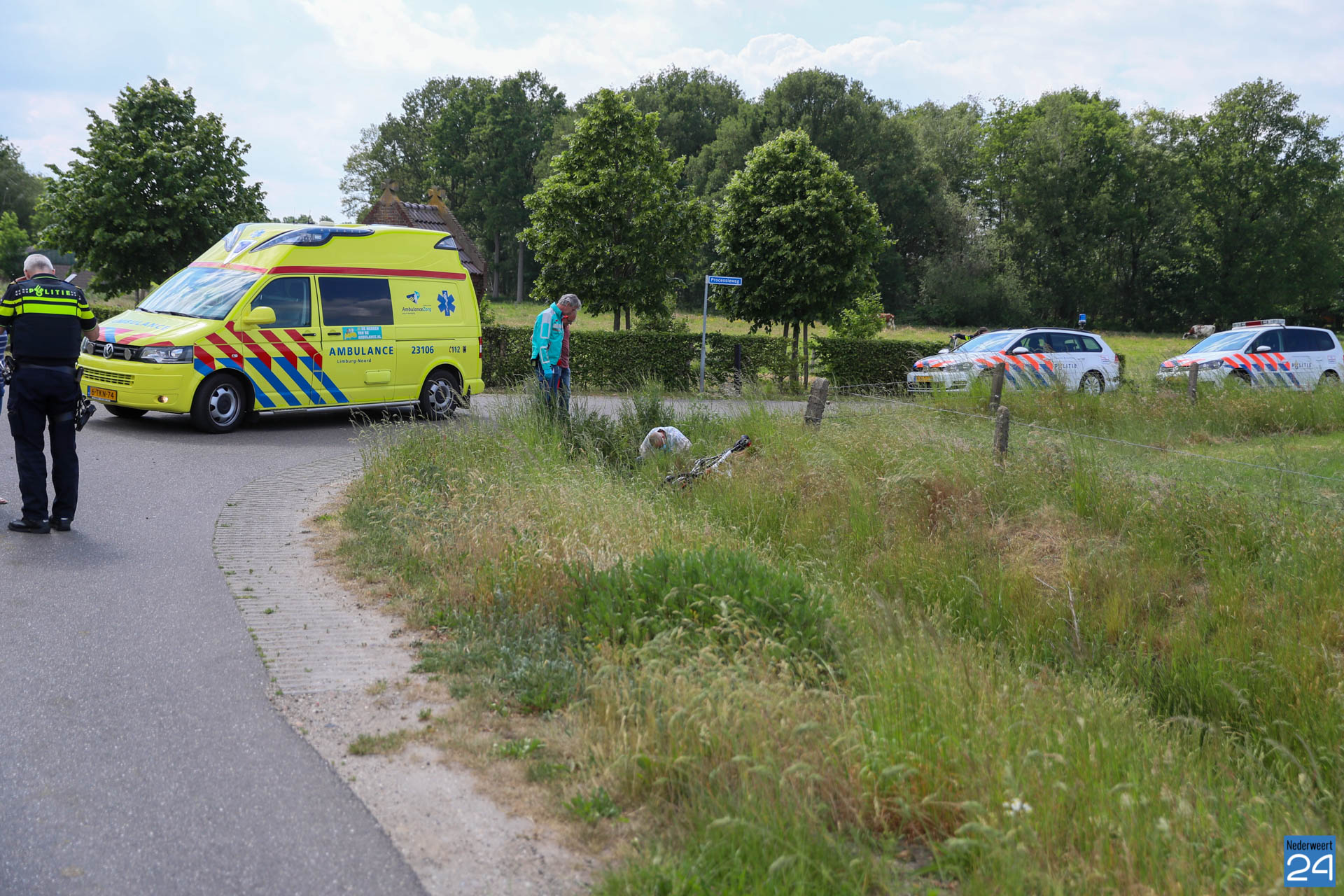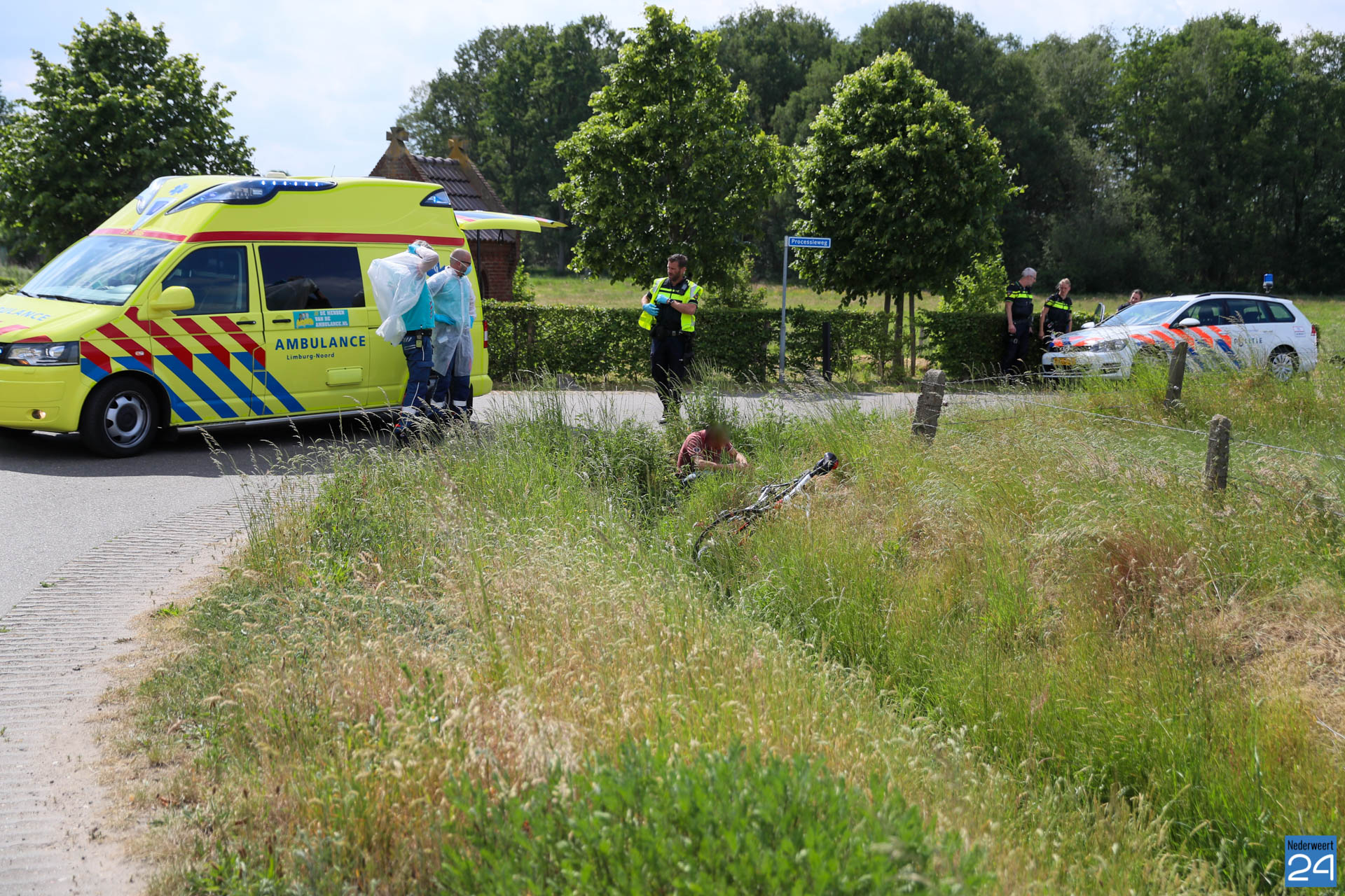 De wielrenner kwam bij zijn val in de sloot terecht. Omstanders boden eerste hulp en hebben de hulpdiensten gewaarschuwd.