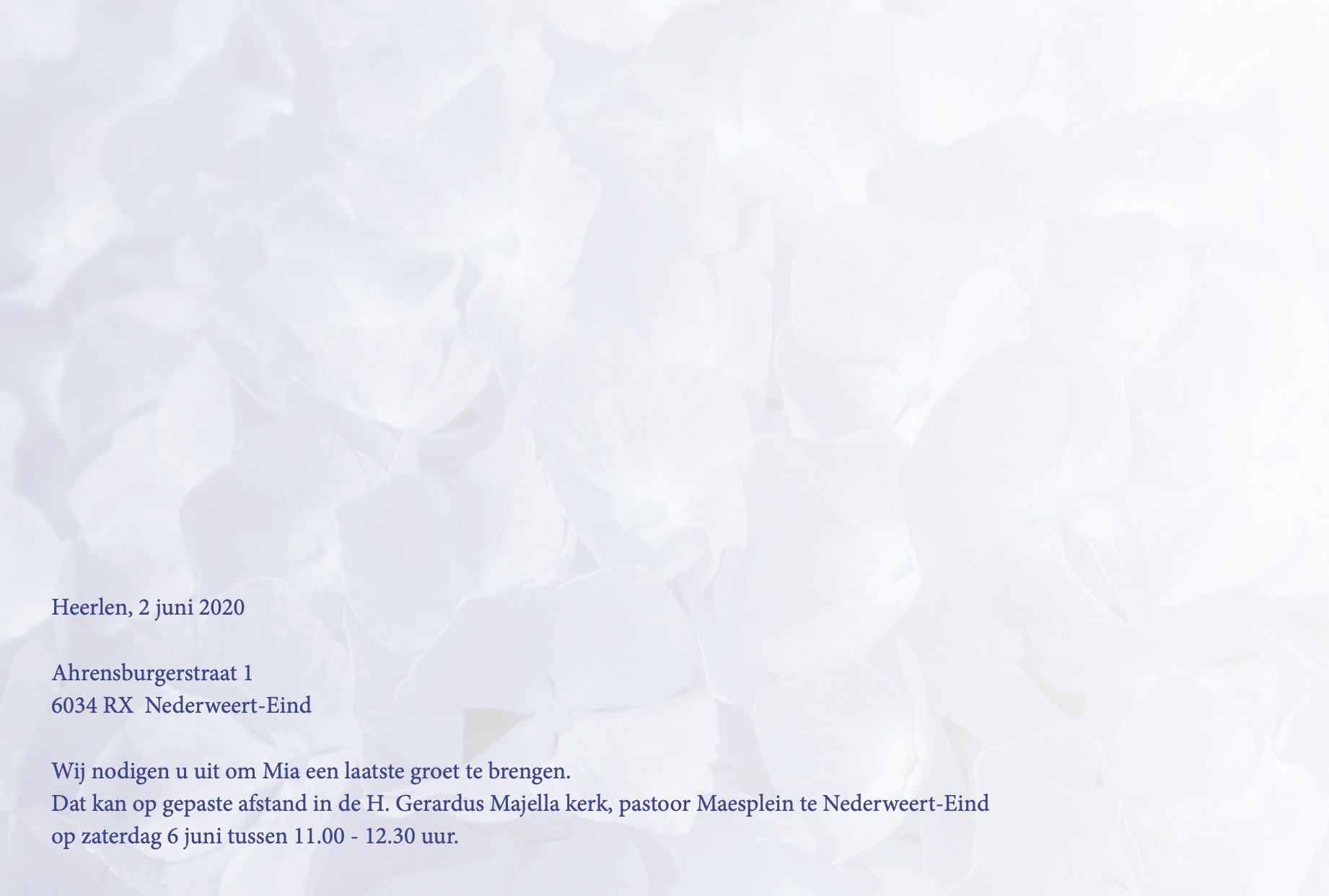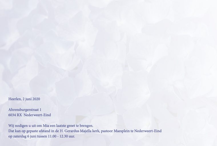 De gezondheidstoestand van Mia was ons bekend toch kwam haar snelle overlijden onverwacht