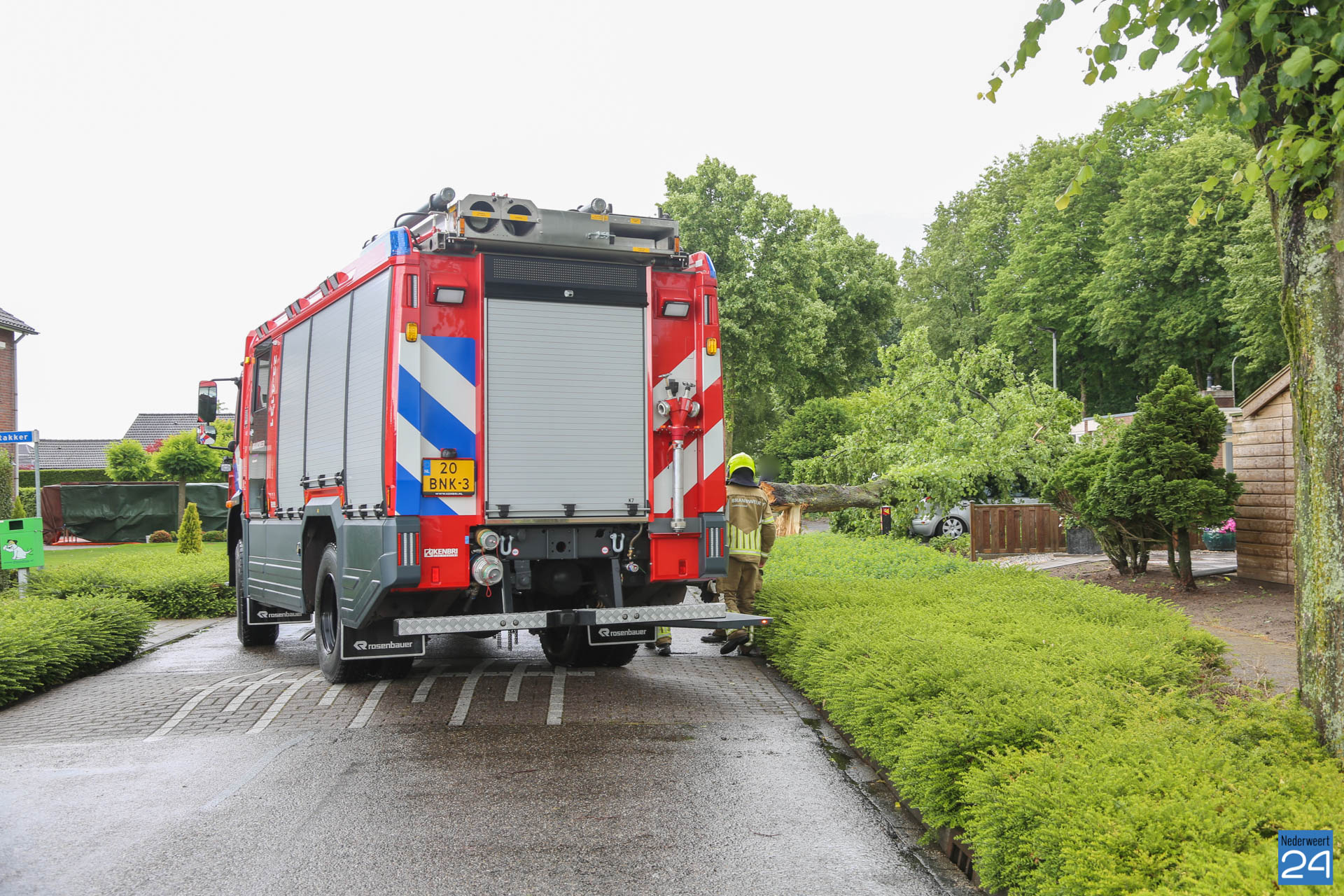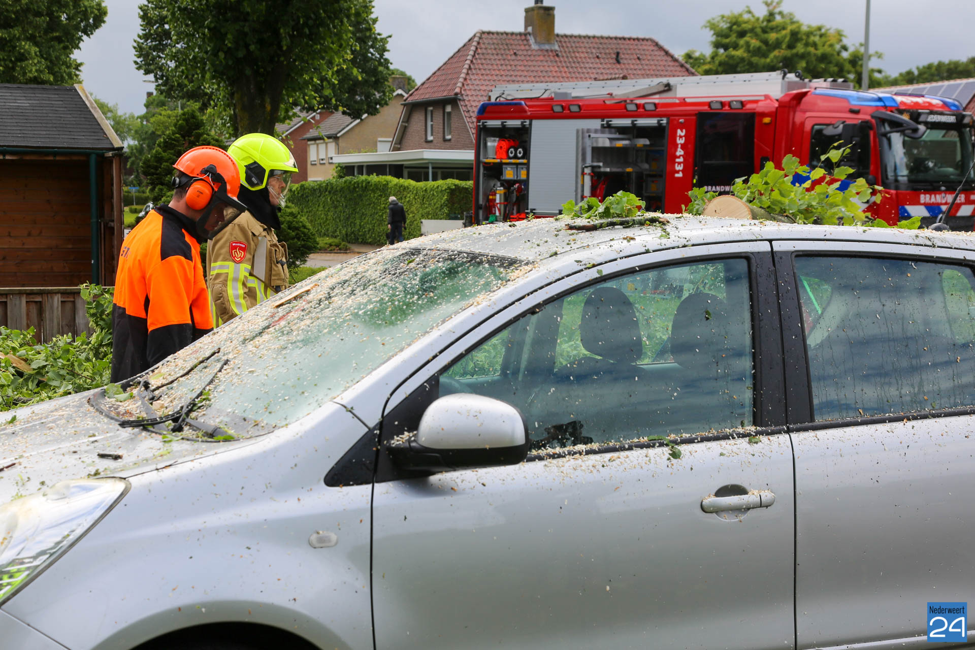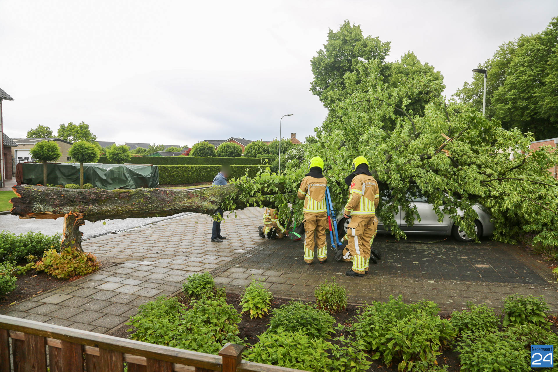 Een boom is vrijdagmiddag op een personenauto terecht gekomen. Dat gebeurde op de Sint Gerardusstraat in Nederweert-Eind. Mogelijk heeft de harde wind een rol gespeeld.