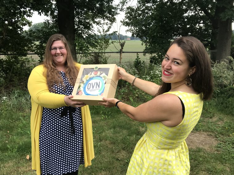 Blue Avocado uit Ospel is het jongste lid van de Ondernemers Vereniging Nederweert (OVN). Speciaal voor deze gelegenheid overhandigde Fauve Schelfhout namens de OVN een taart van bakkerij Tommie aan.